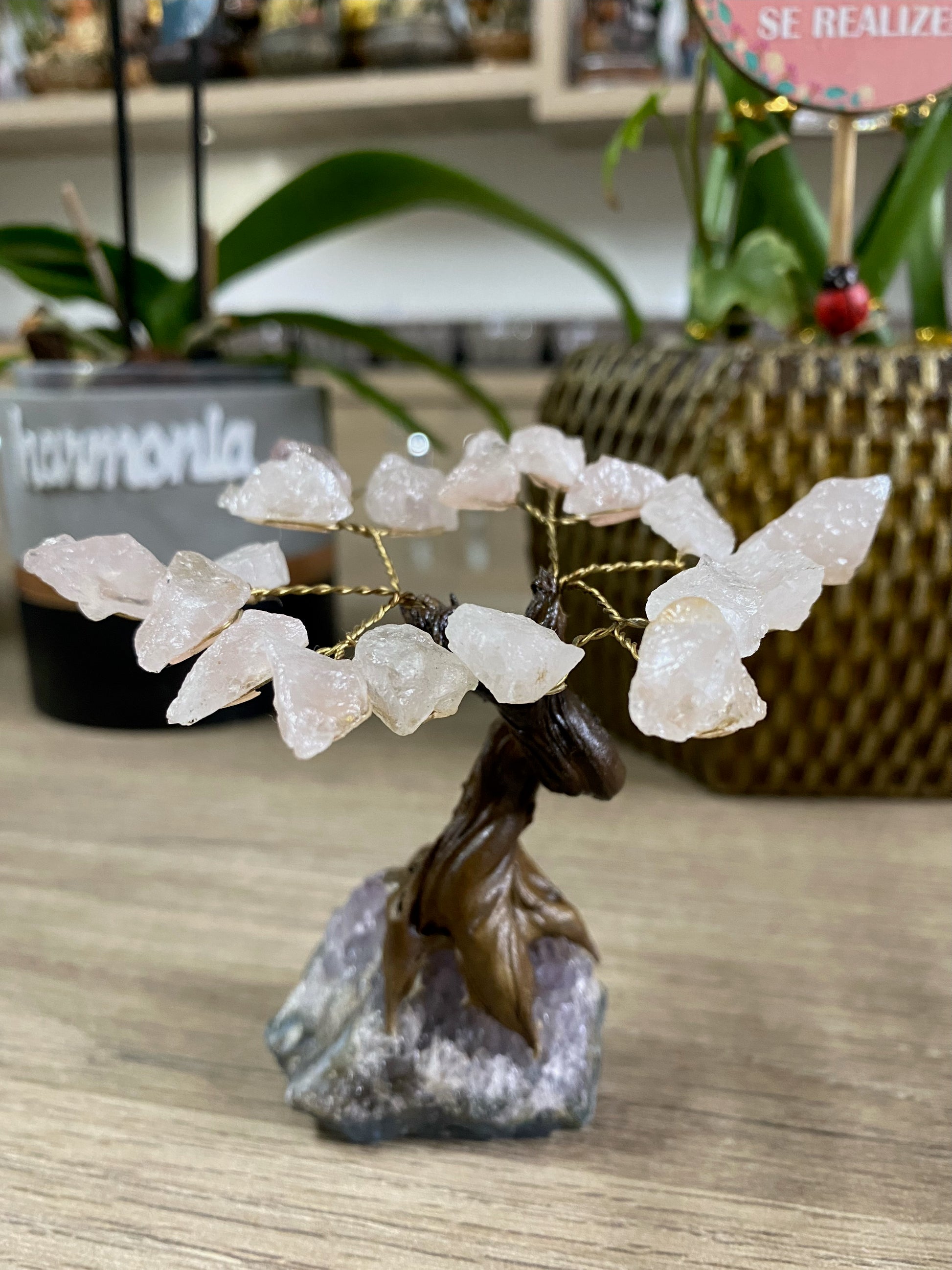 Conecte-se com as energias vibrantes da natureza com a nossa Árvore de Pedras, uma obra única e encantadora que combina uma base de ametista com pétalas de quartzo rosa.