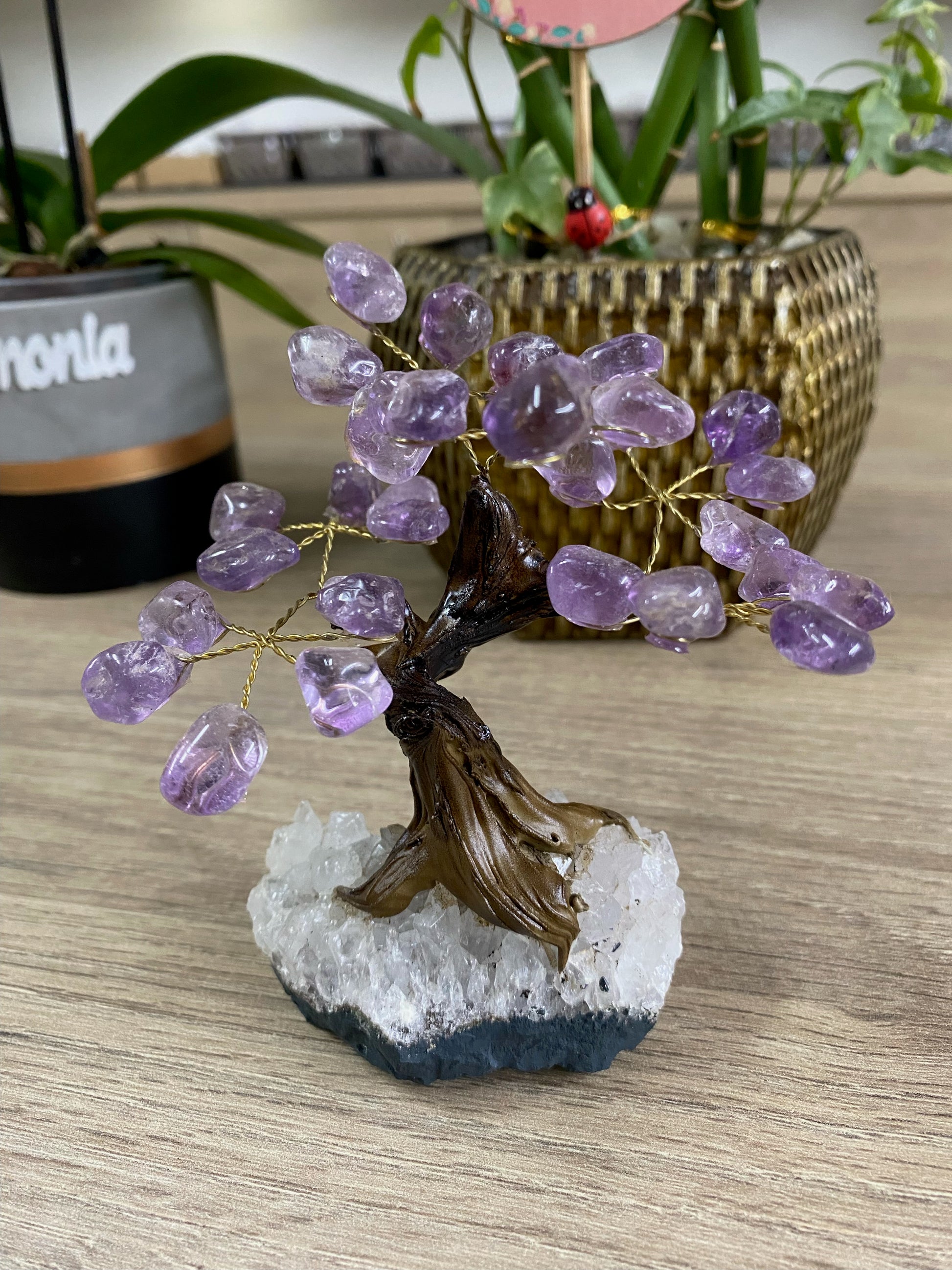 Conecte-se com as energias vibrantes da natureza com a nossa Árvore de Pedras, uma obra única e encantadora que combina uma base de ametista com pétalas de ametista.