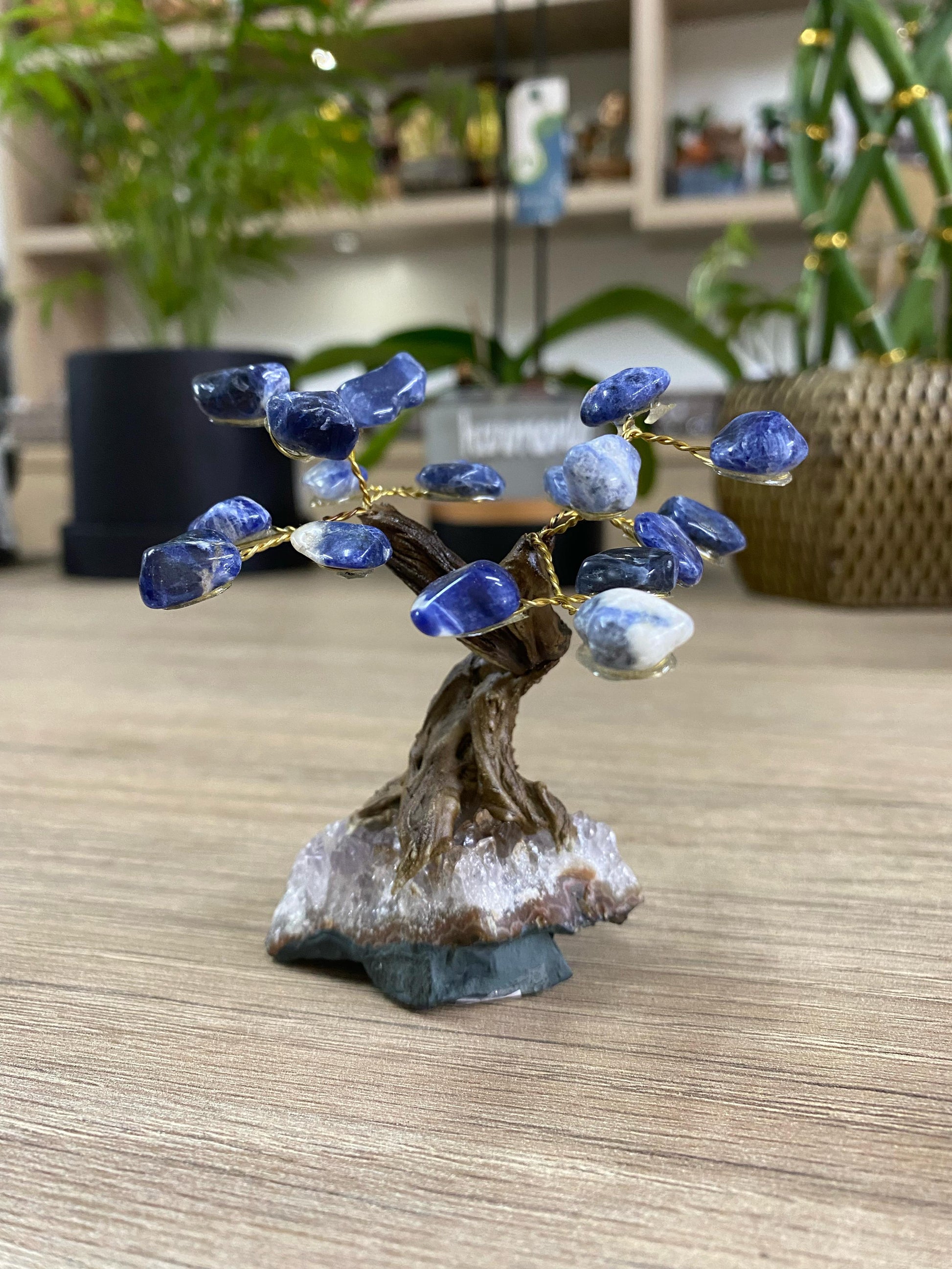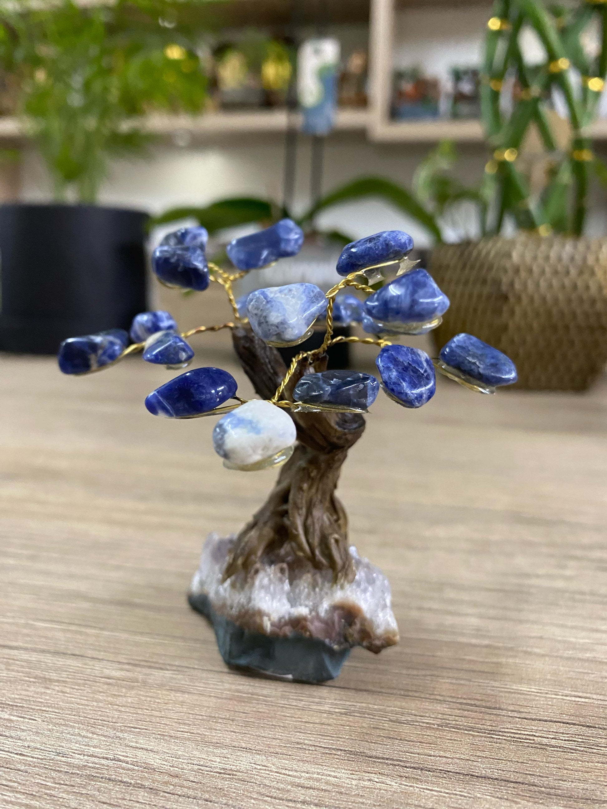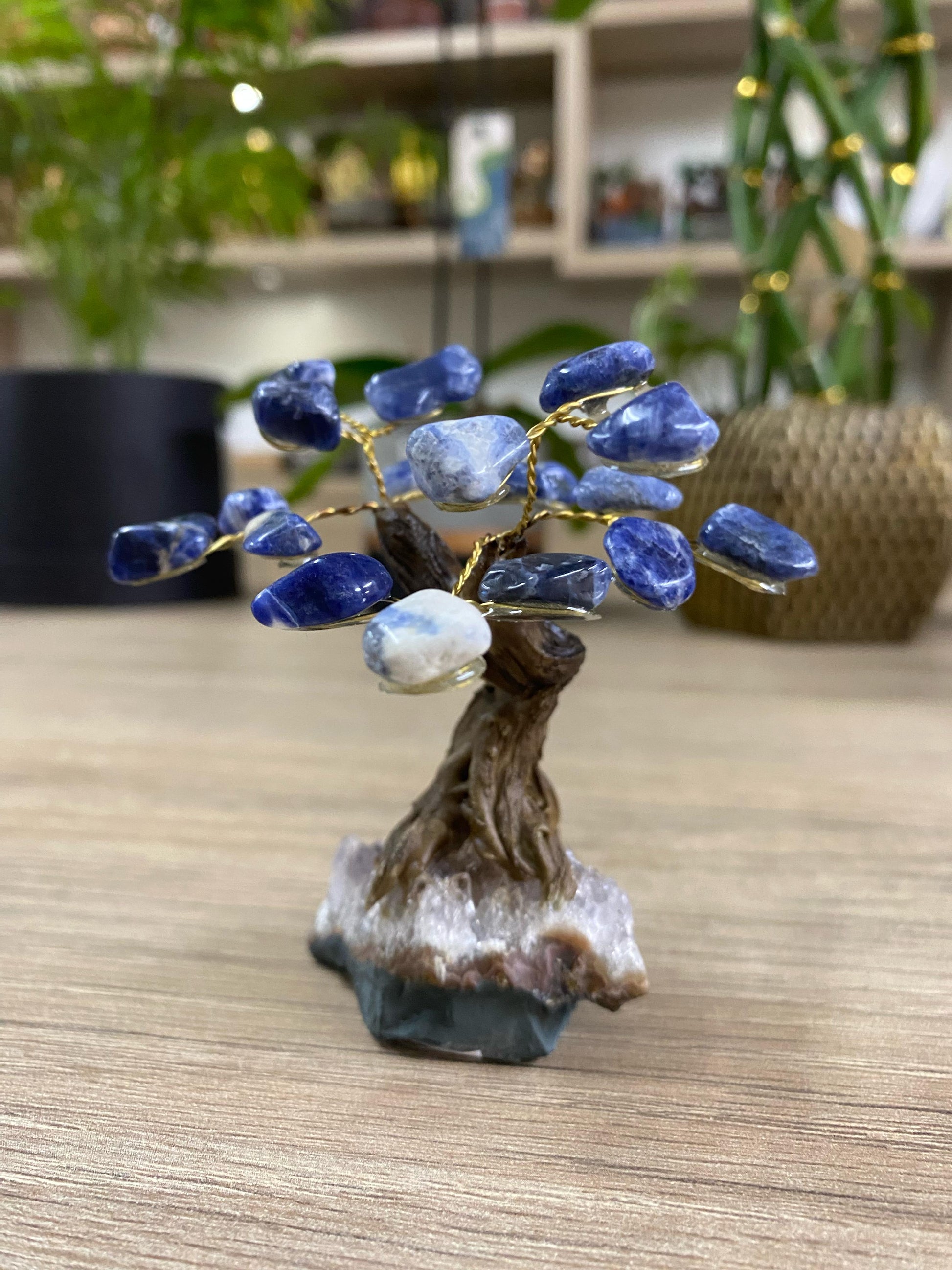 Conecte-se com as energias vibrantes da natureza com a nossa Árvore de Pedras, uma obra única e encantadora que combina uma base de ametista com pétalas de sodalita.