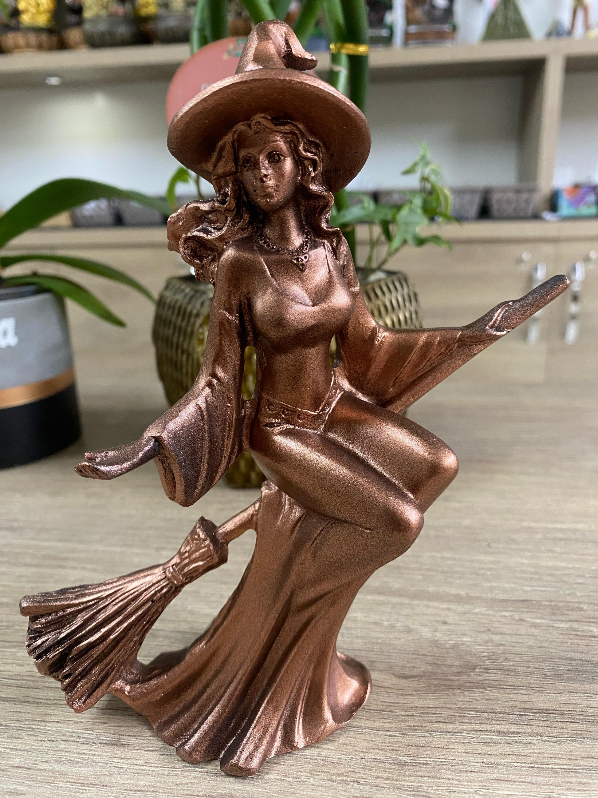 - Material Durável e Detalhes Finos: A resina oferece durabilidade à estátua, enquanto os detalhes finos na escultura realçam a beleza e a expressão da bruxa.