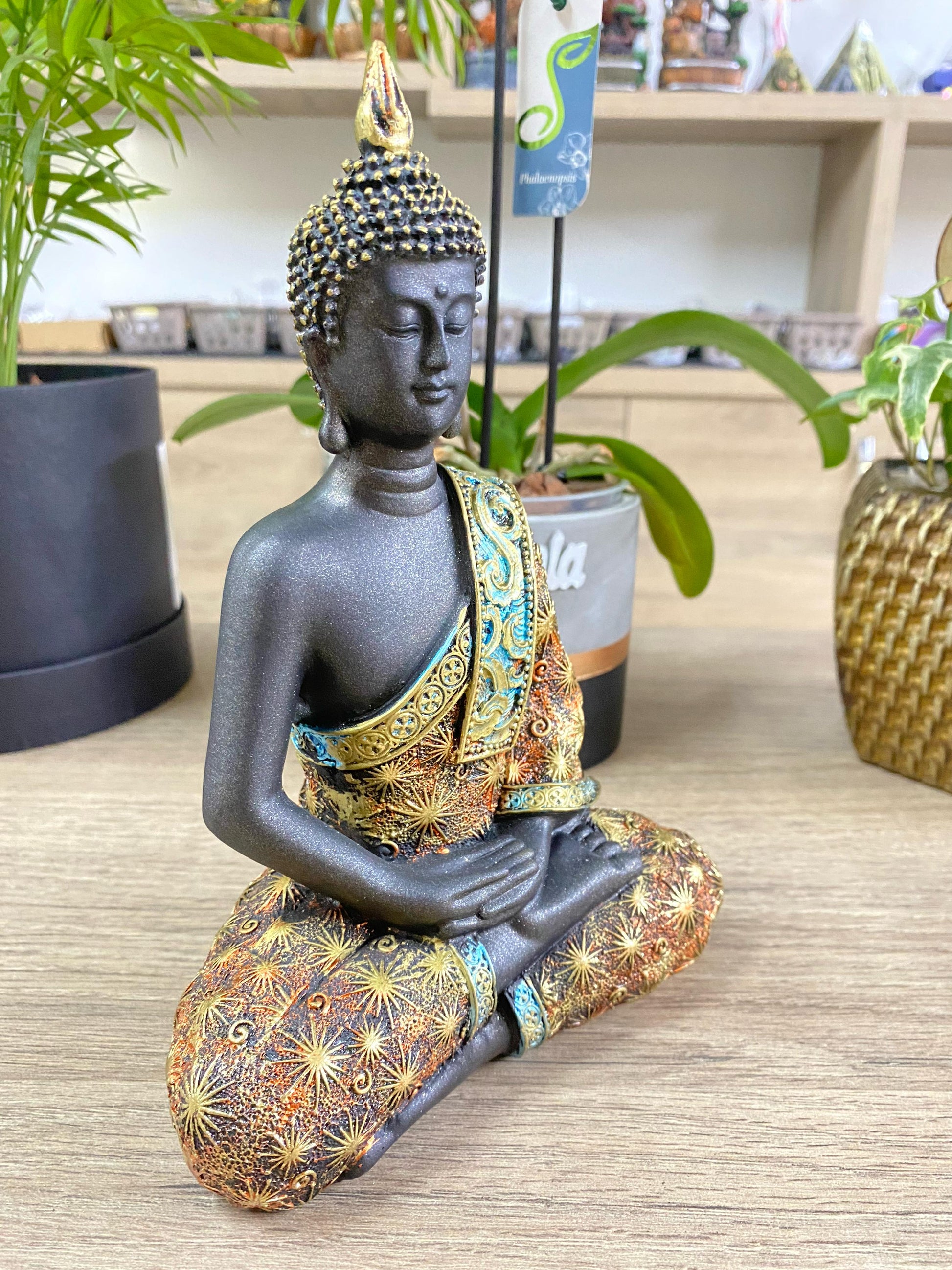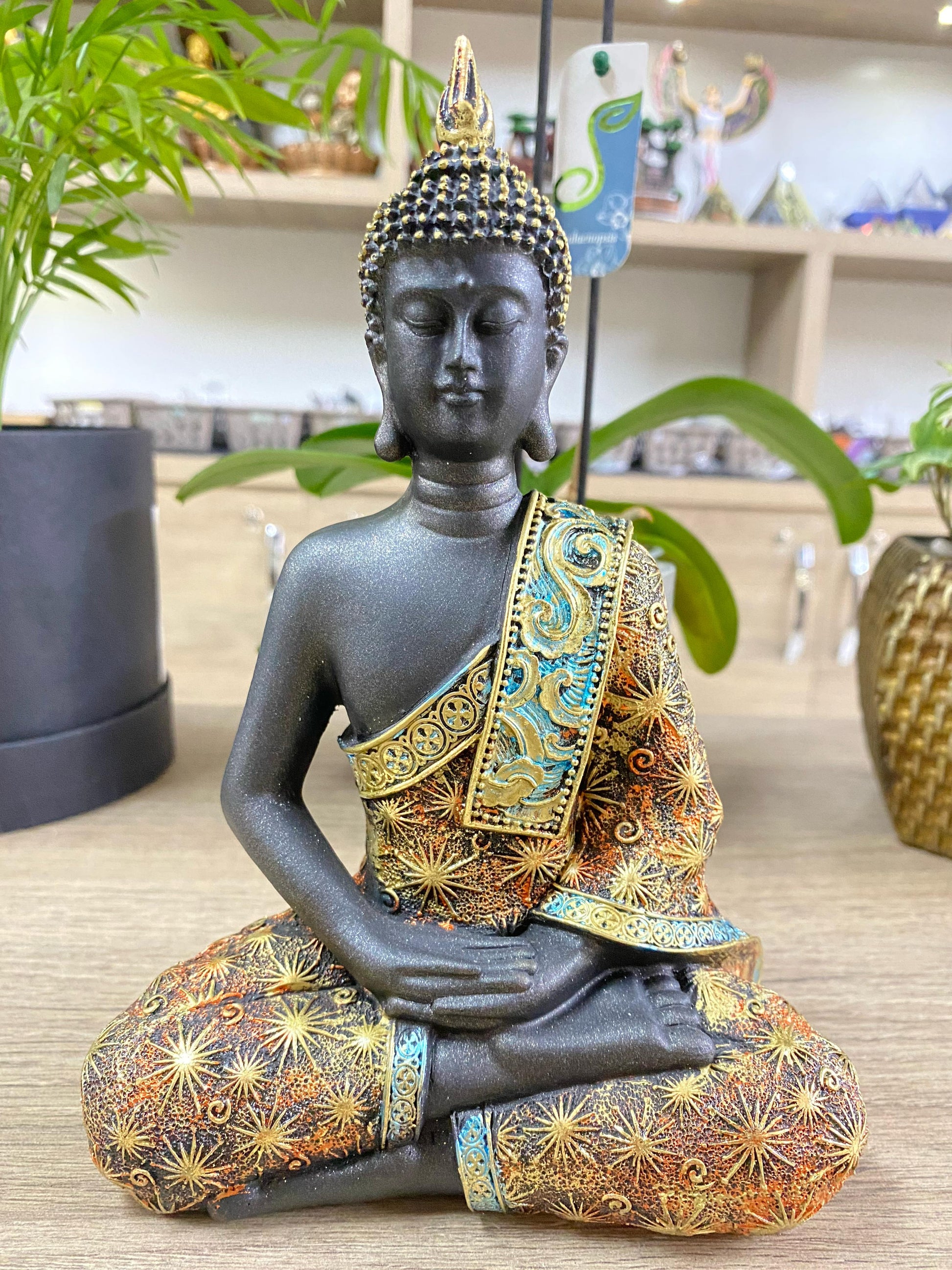 Deixe o Buda Preto Sentado agregar uma atmosfera contemplativa ao seu espaço. Adquira esta peça única para desfrutar de momentos de tranquilidade e reflexão no seu dia a dia.