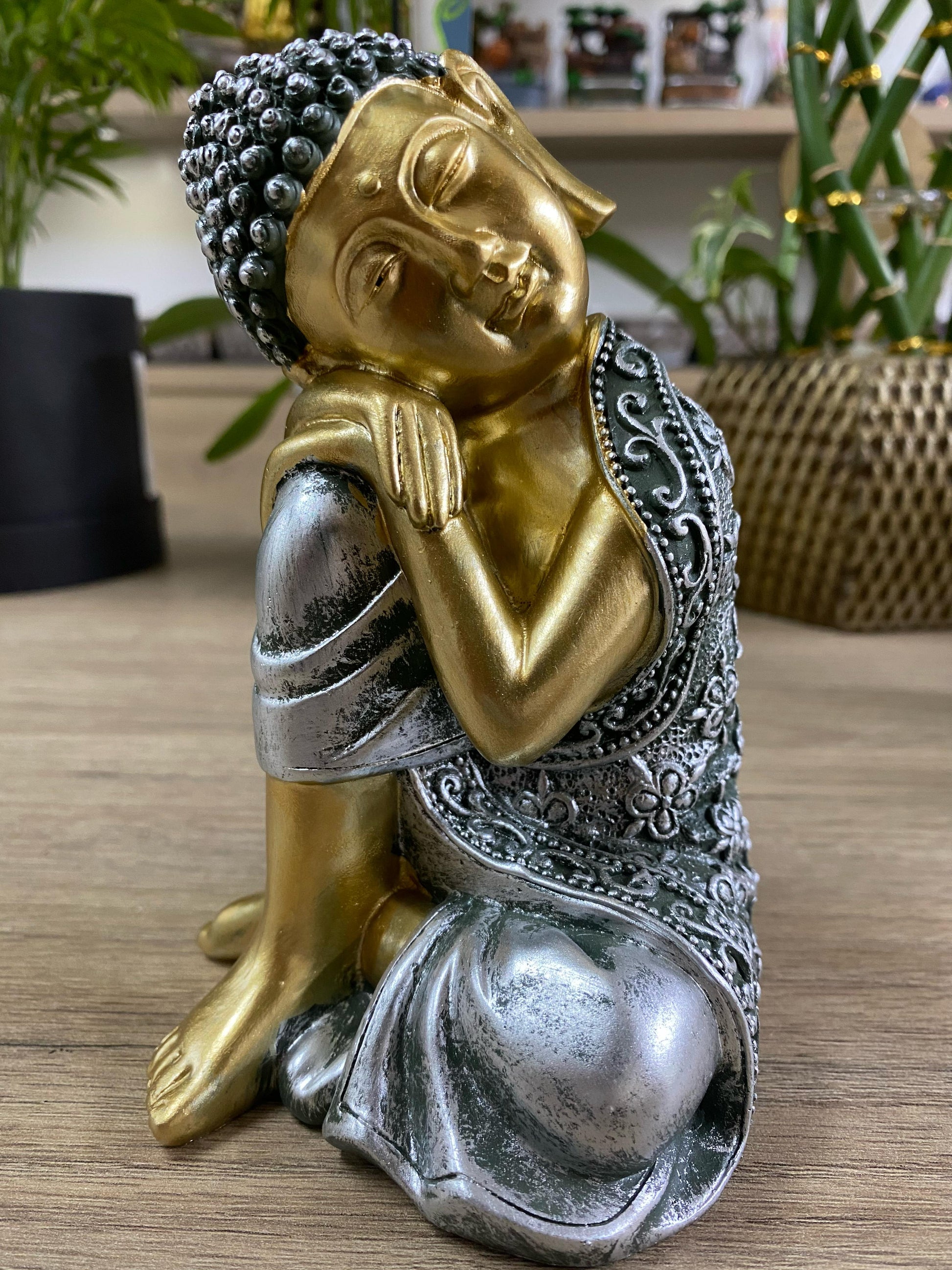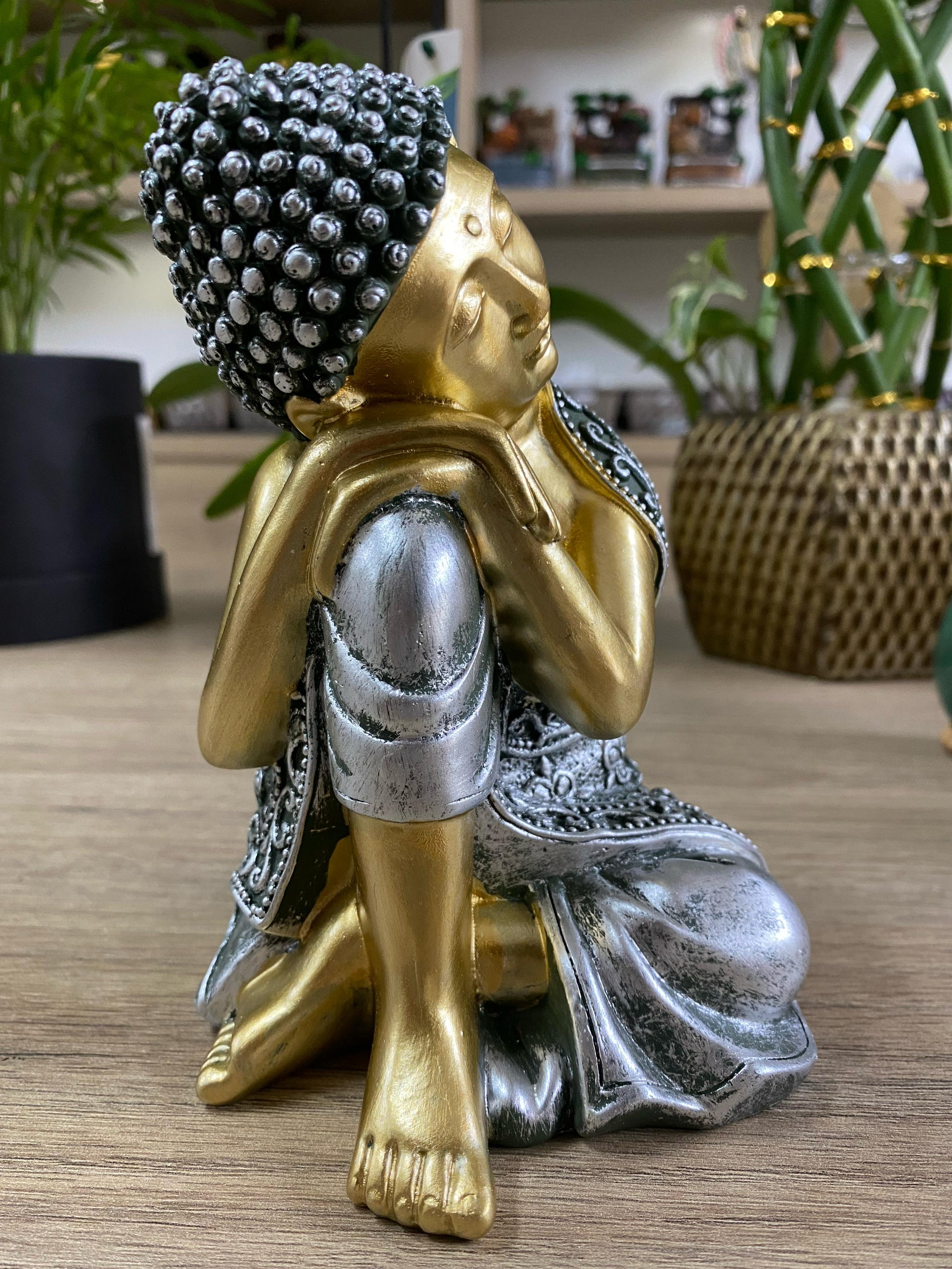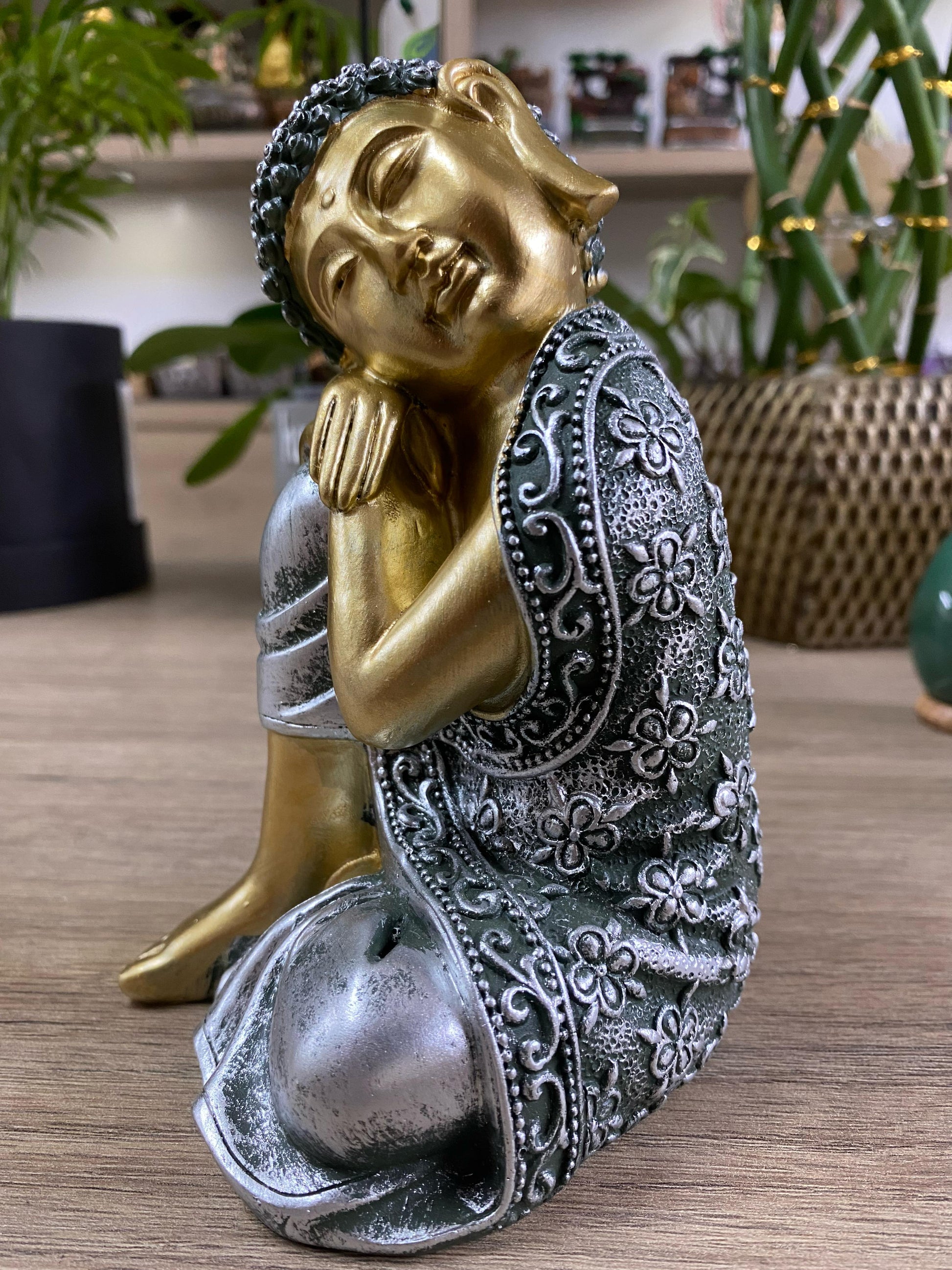 Material: Elaborado com precisão em resina, o Buda Sidarta Sentado oferece uma combinação de durabilidade e beleza.