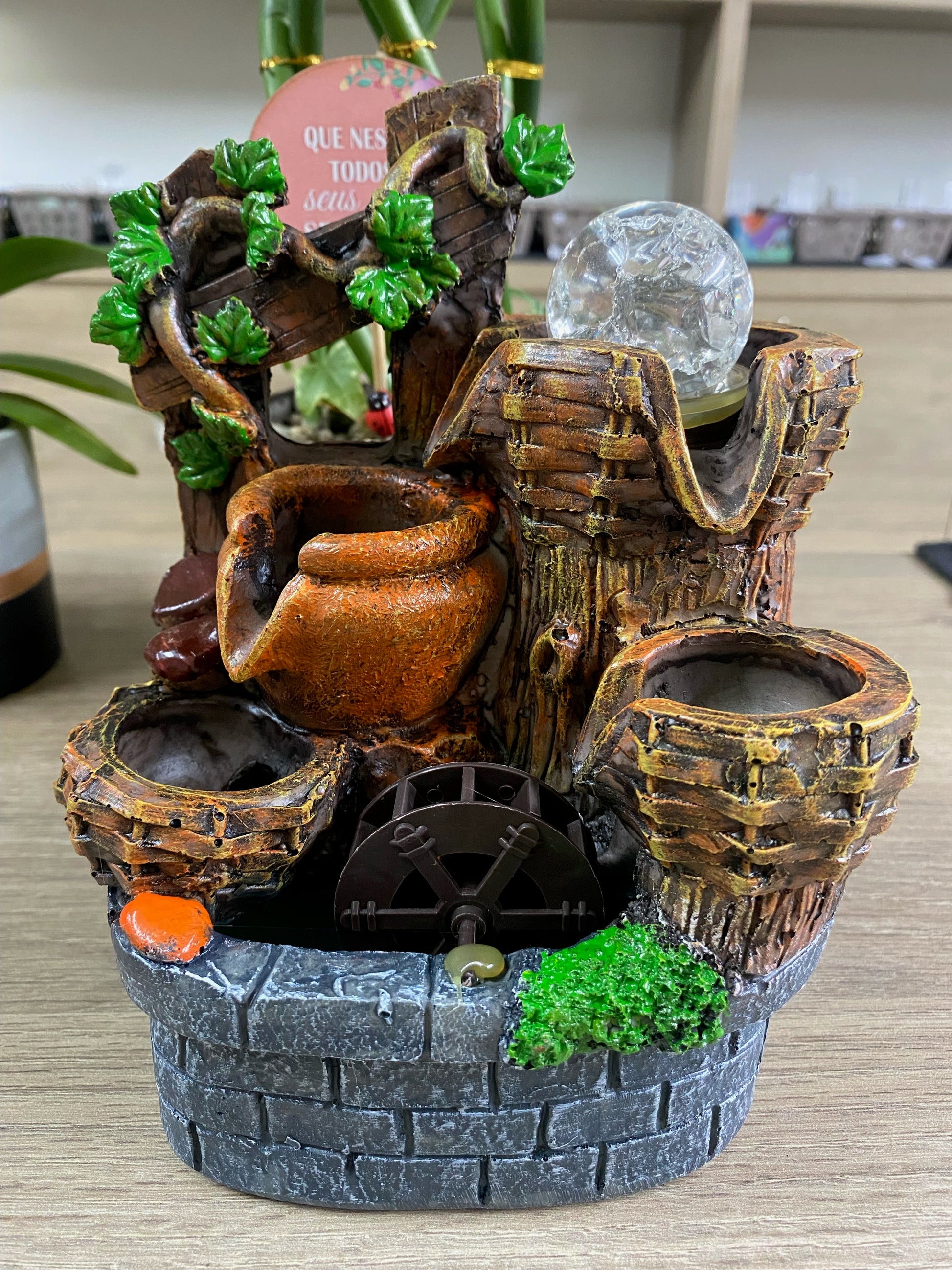 Transforme seu espaço em um oásis de serenidade com a nossa Fonte de Água em Resina, uma peça encantadora. Esta fonte não apenas é uma obra decorativa, mas também proporciona uma experiência relaxante, emanando uma energia fluida e revitalizante.
