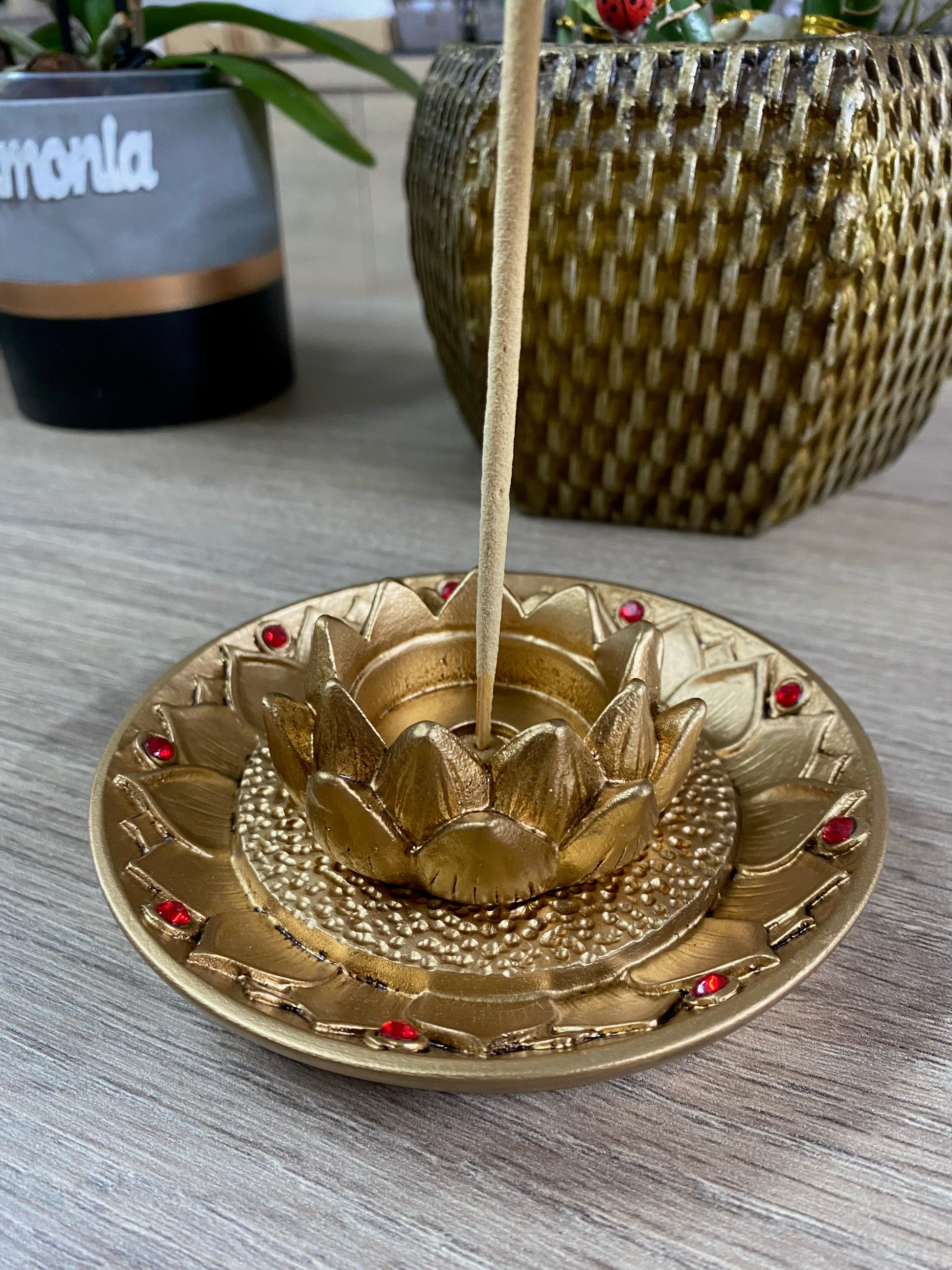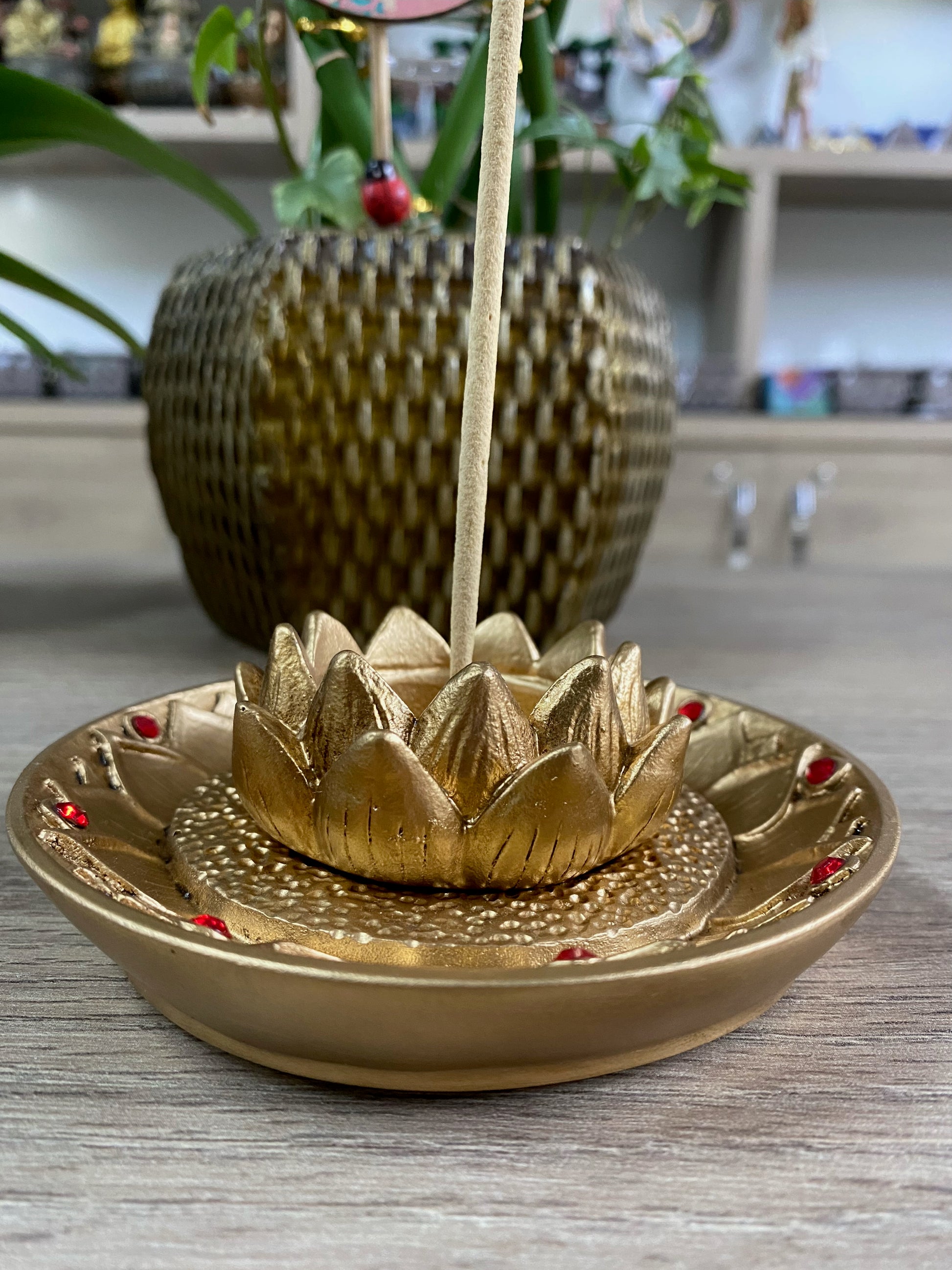Incensário de Resina Prato - Flor de Lótus Dourado