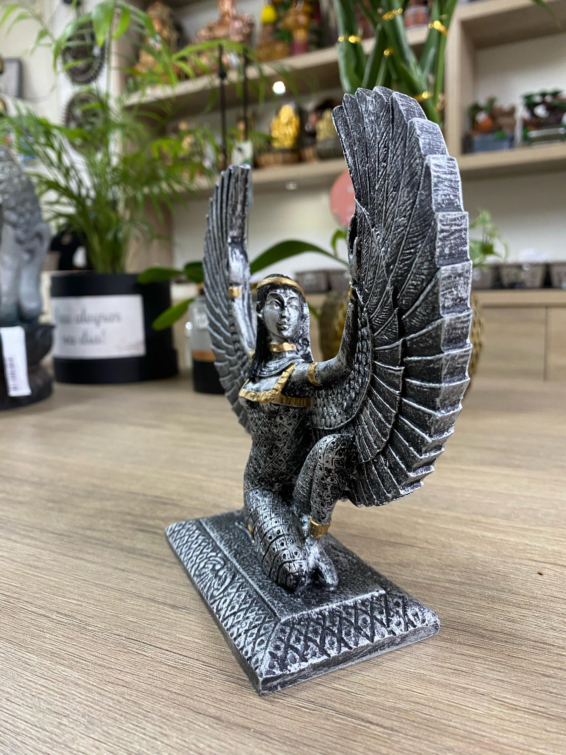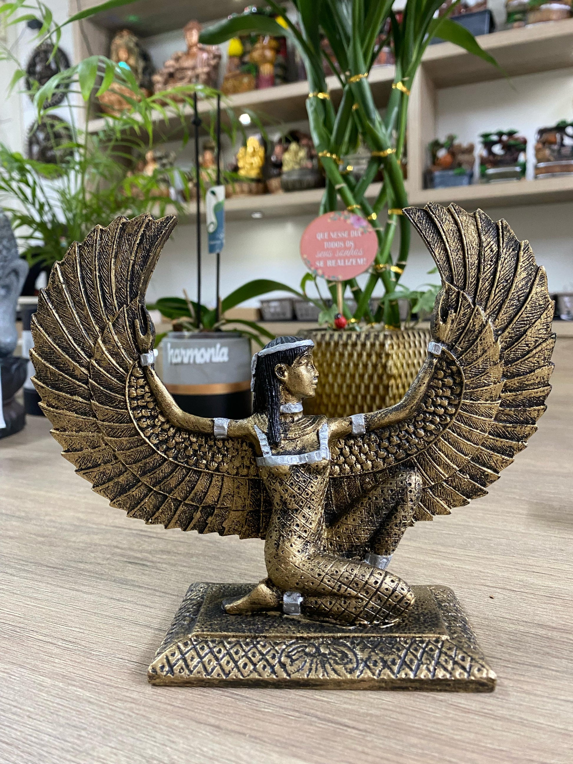 Deixe que a presença graciosa da Deusa Isis ilumine seu ambiente, criando uma atmosfera que reflete a espiritualidade e a elegância da mitologia egípcia.