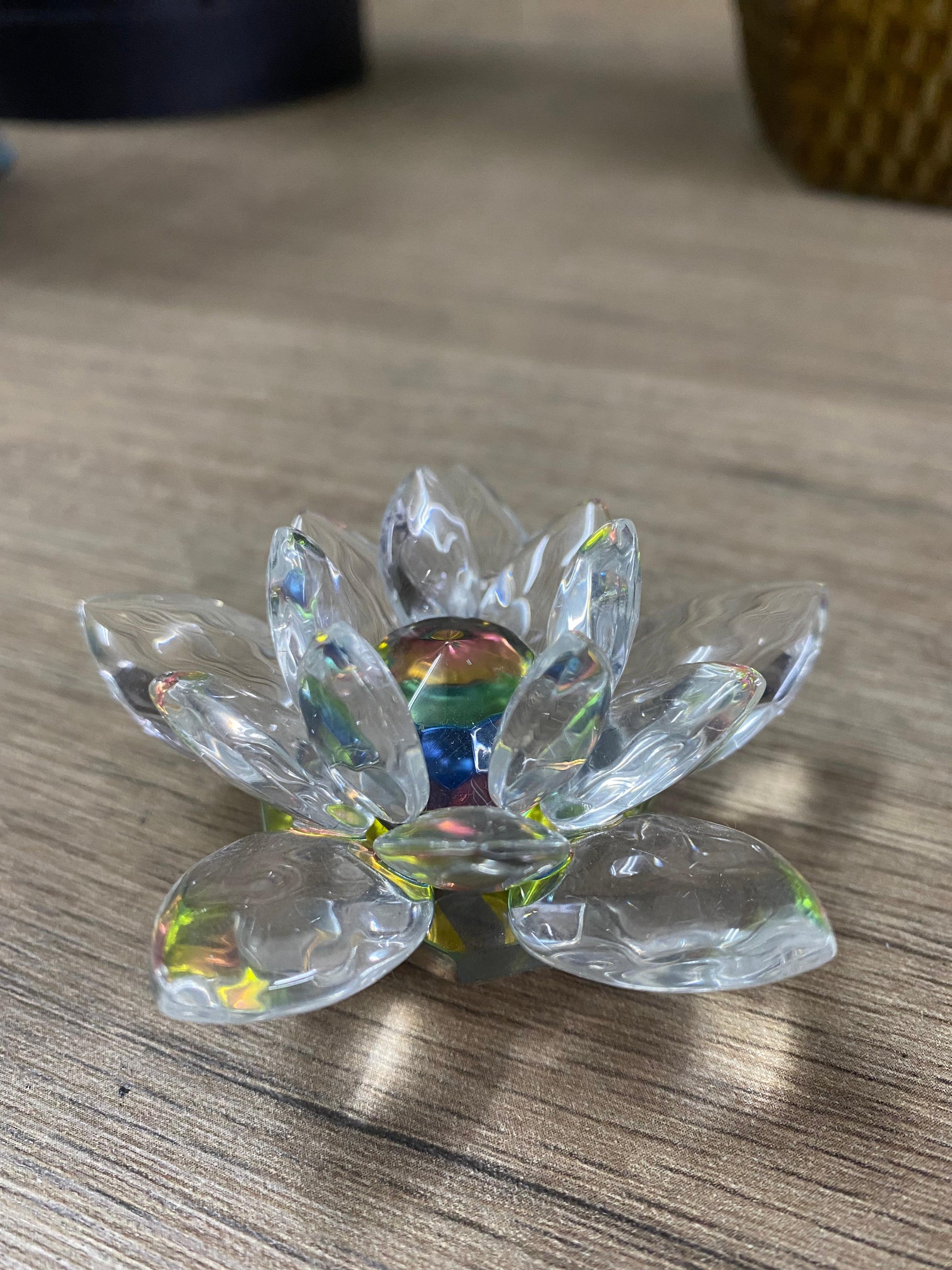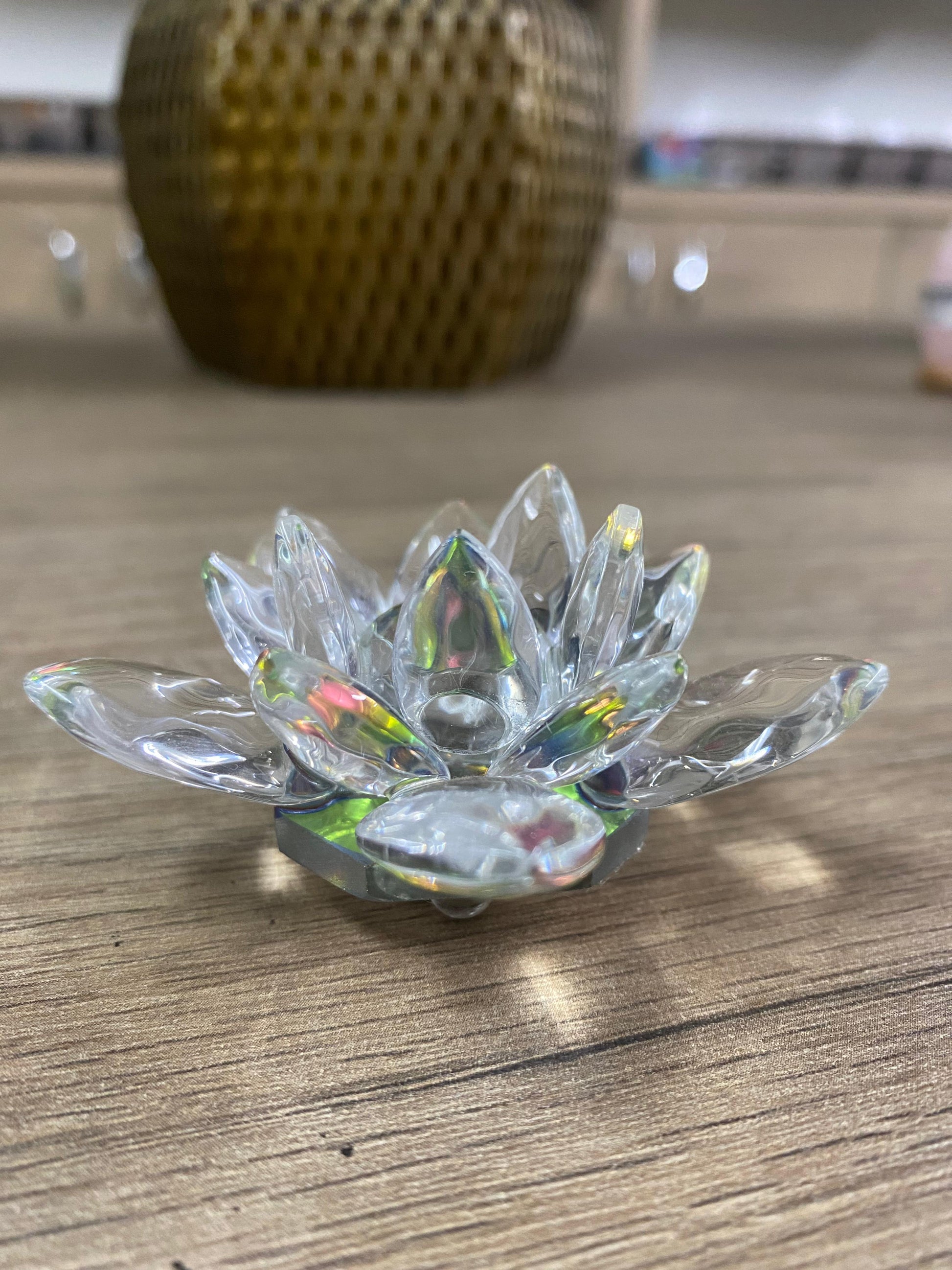Cada flor de lótus é habilmente moldada em cristal de vidro, capturando a luz de maneira deslumbrante e criando reflexos prismáticos que dançam ao redor do ambiente. Adicione essas peças cativantes à sua decoração para elevar a energia e a beleza do seu espaço com um toque de serenidade e estilo.