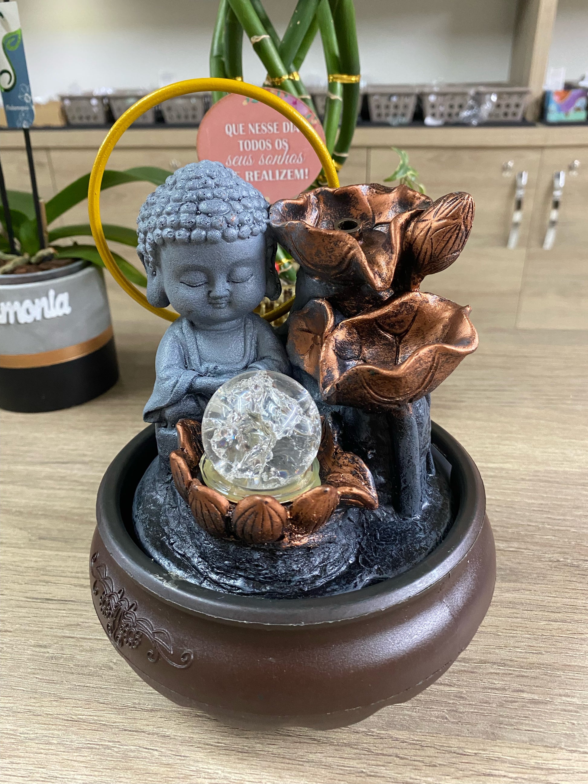 Deixe a Fonte de Água em Resina ser a peça central do seu espaço, proporcionando não apenas beleza estética, mas também uma fonte contínua de relaxamento e energias positivas.