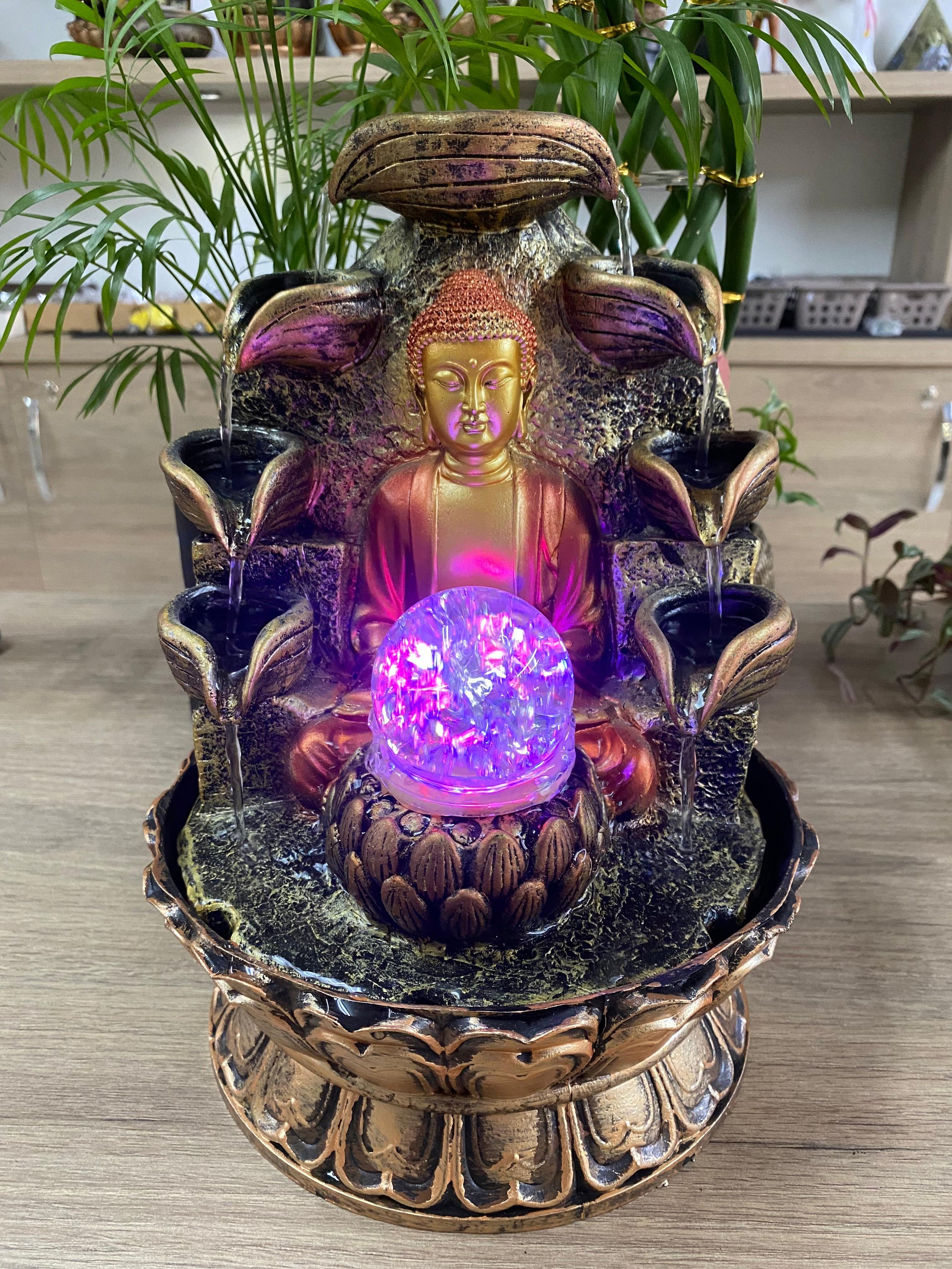 - A presença do Buda na fonte promove uma sensação de elevação espiritual, inspirando serenidade e paz interior.