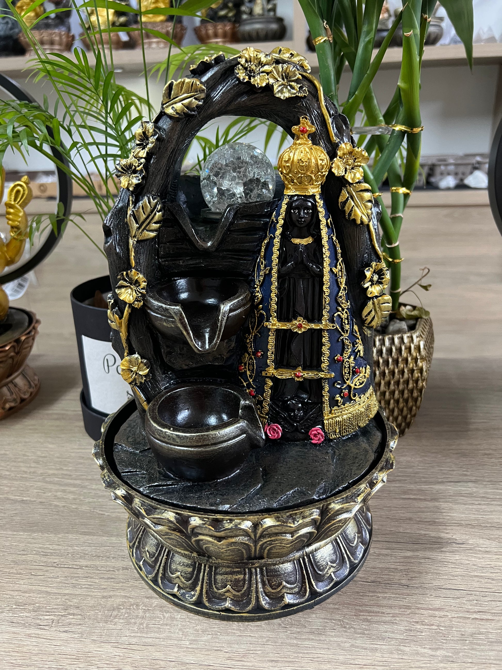 Coloque a Fonte de Água com Imagem de Nossa Senhora Aparecida em um lugar especial, onde possa ser apreciada diariamente. Ideal para salas de estar, escritórios ou espaços de meditação, esta fonte traz não apenas beleza, mas também uma energia positiva e acolhedora para o seu ambiente.
