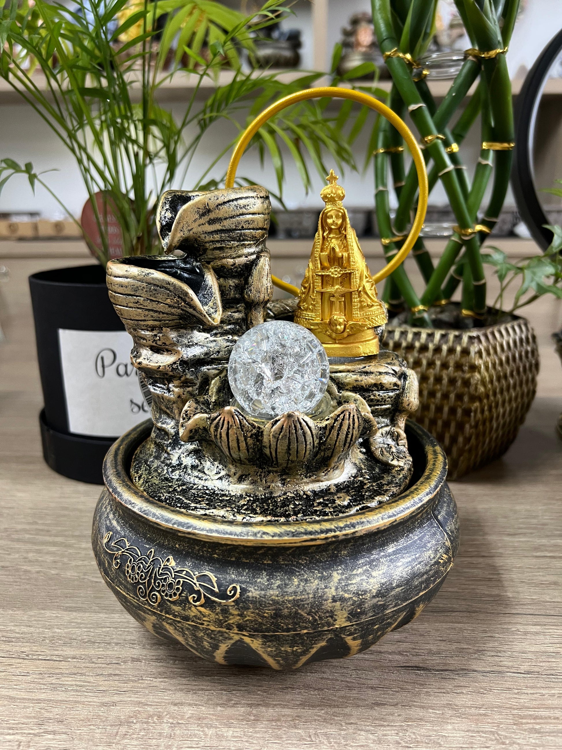 Transforme seu espaço com a presença serena e abençoada da Fonte de Água com Imagem de Nossa Senhora Aparecida. Esta peça elegante não só embeleza seu ambiente, mas também traz uma sensação de tranquilidade e proteção, ideal para momentos de meditação e oração. A água corrente, símbolo de purificação e renovação, cria uma atmosfera de paz e espiritualidade, ajudando a acalmar a mente e a alma.