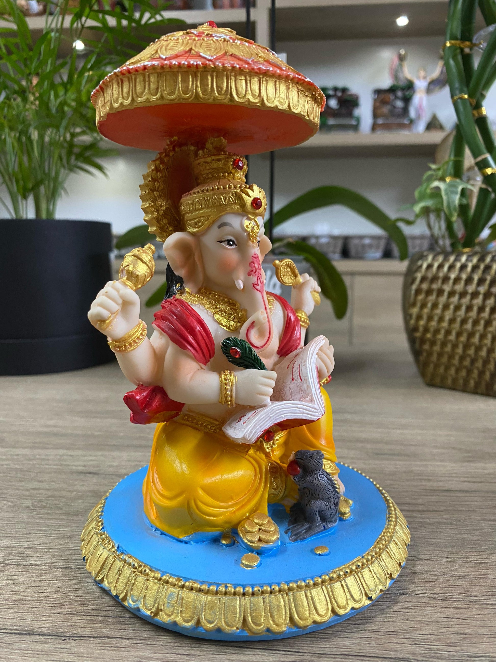 Apresentamos o Ganesha Colorido em Resina, uma expressão encantadora da divindade hindu que simboliza a sabedoria, removedor de obstáculos e provedor de boa fortuna. Esta peça artística não apenas adiciona um toque de espiritualidade ao seu espaço, mas também invoca as bênçãos de Ganesha.