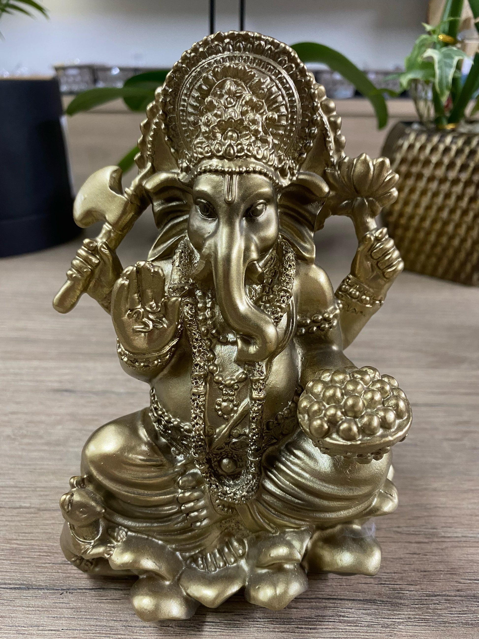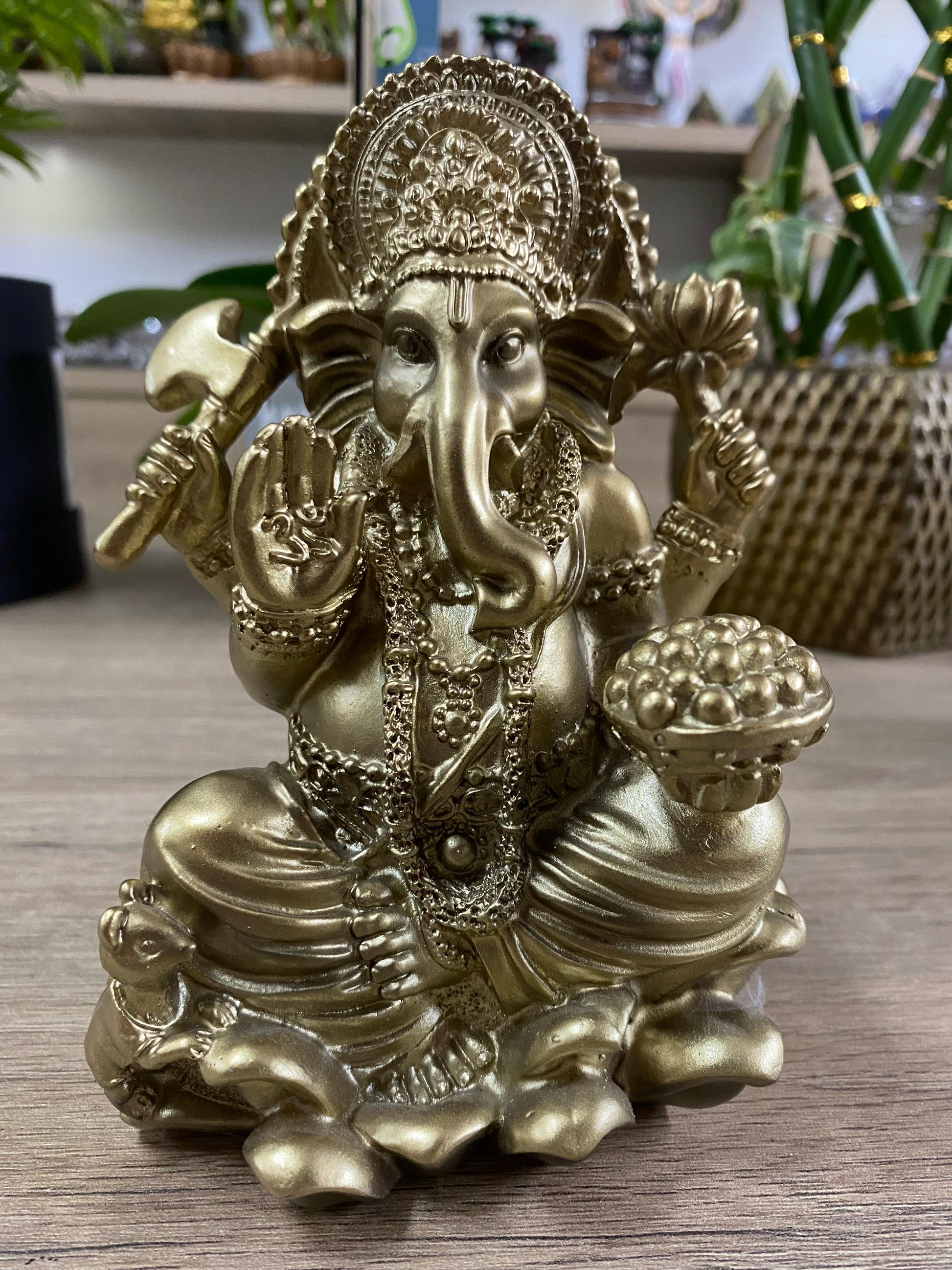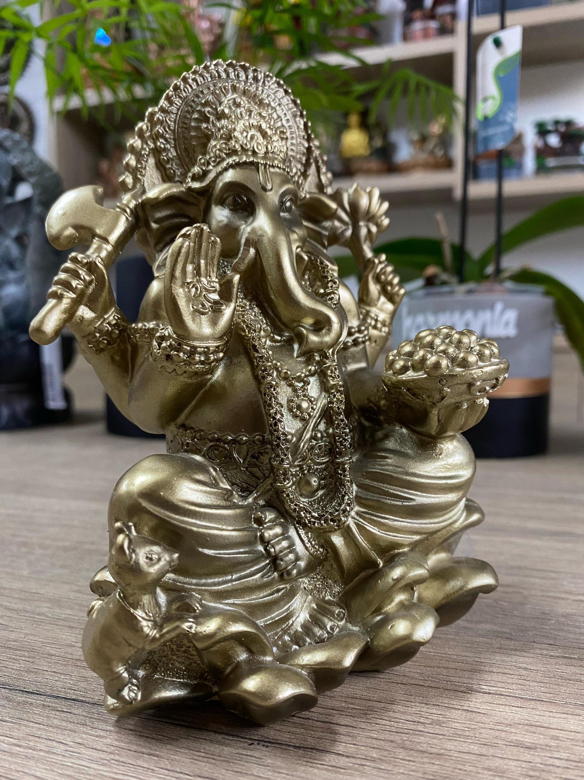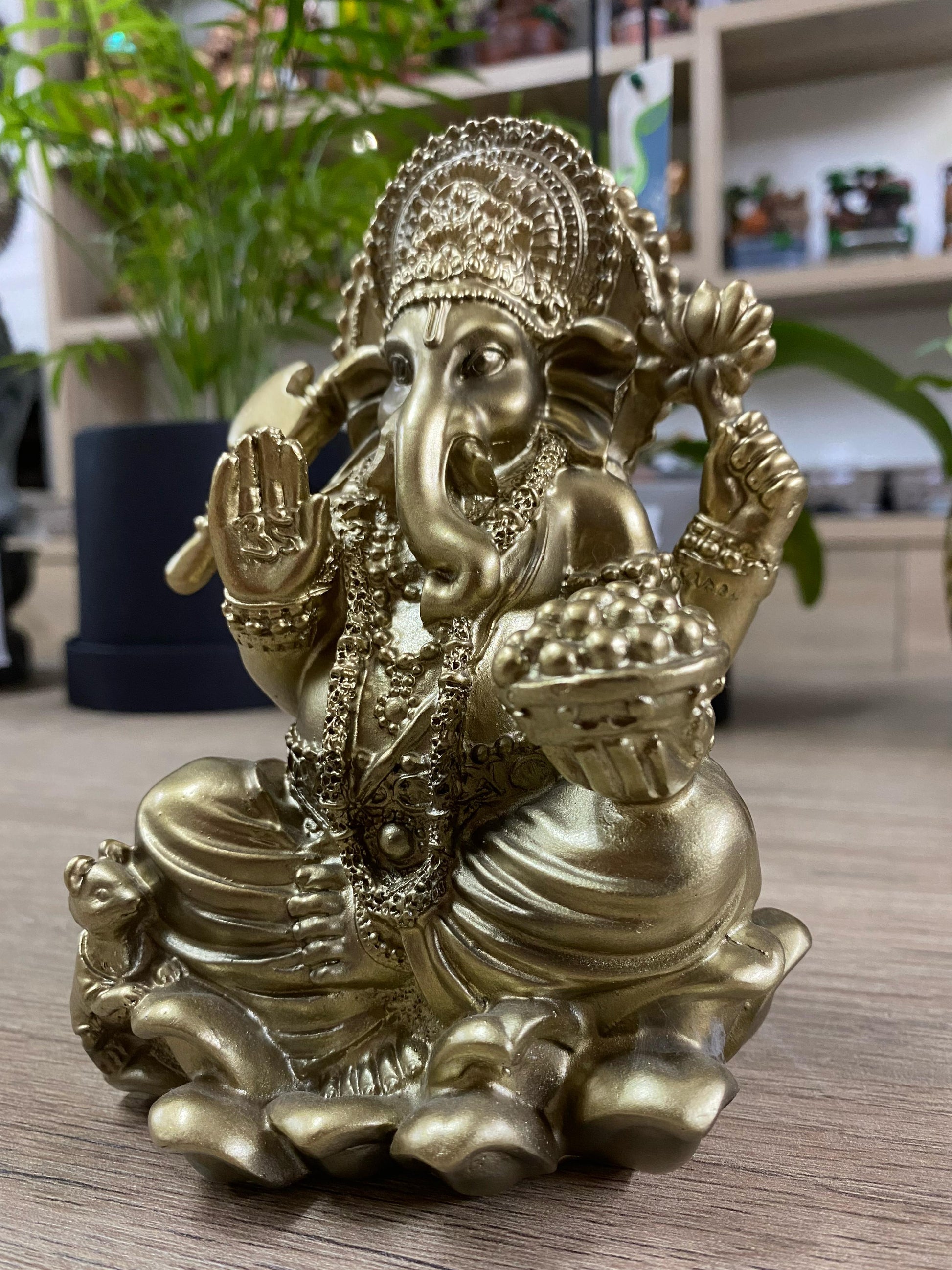 Prosperidade e Riqueza: Ganesha, nesta forma dourada, é frequentemente associado à prosperidade material e à atração de riqueza.