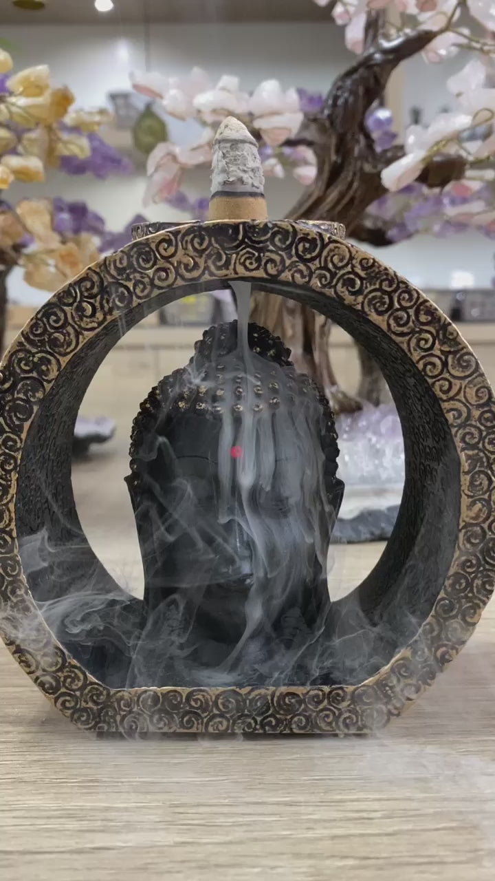 Transforme a queima de incenso em uma experiência visual e aromática única com o Incensário Cascata Cabeça de Buda em Resina.