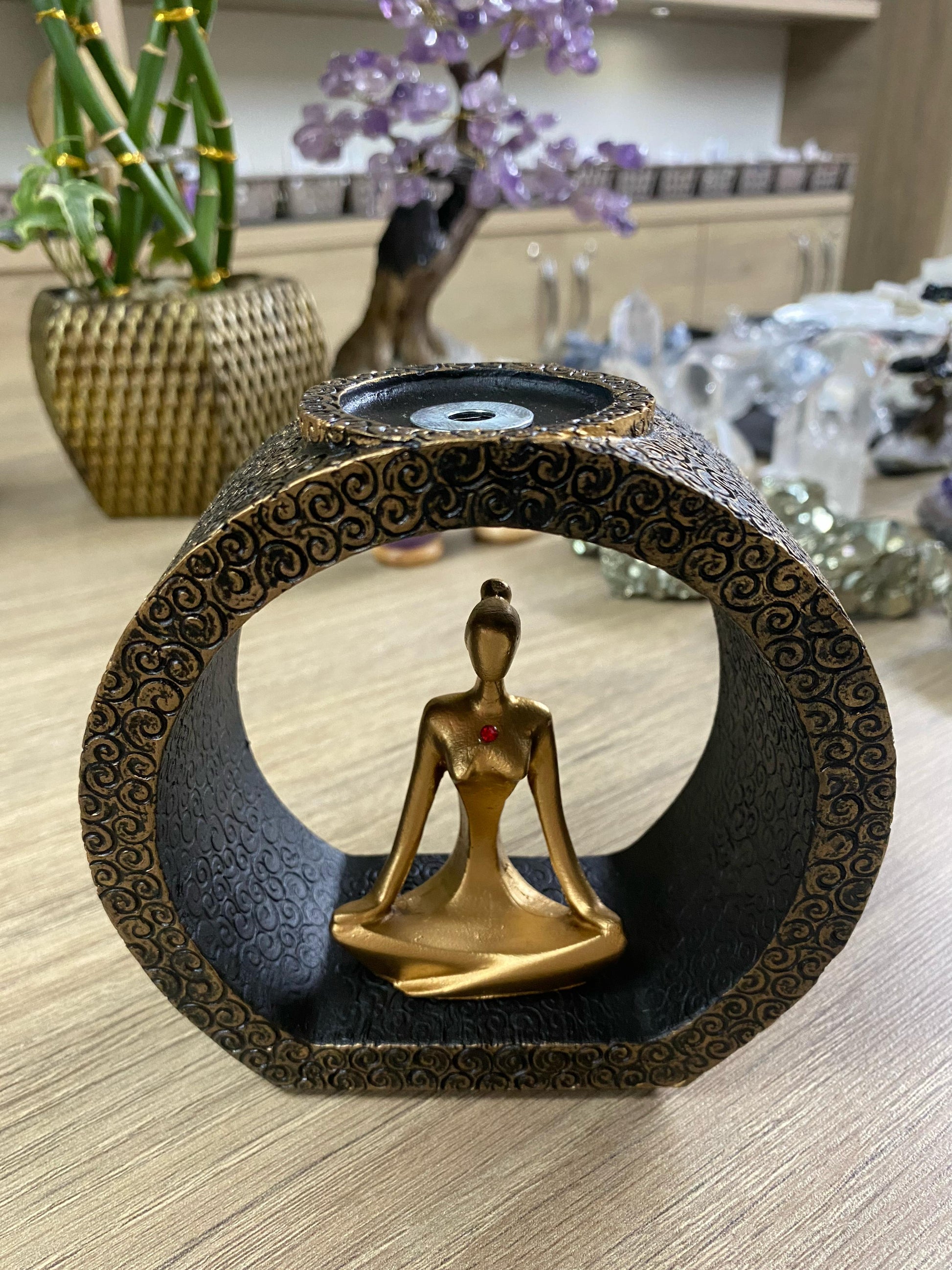 - Meditação Profunda: O design cuidadoso deste incensário, com a imagem de uma pessoa meditando, inspira uma atmosfera propícia para práticas de meditação mais profundas.