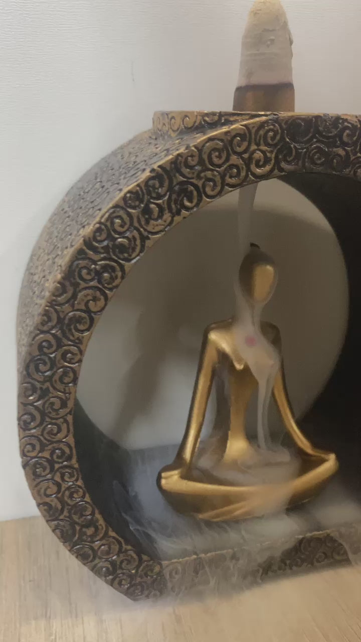 Permita que a serenidade da figura meditativa inspire tranquilidade e foco durante suas práticas espirituais. Deixe a cascata de fumaça guiá-lo em uma jornada interior, criando um ambiente sagrado e propício para a introspecção.