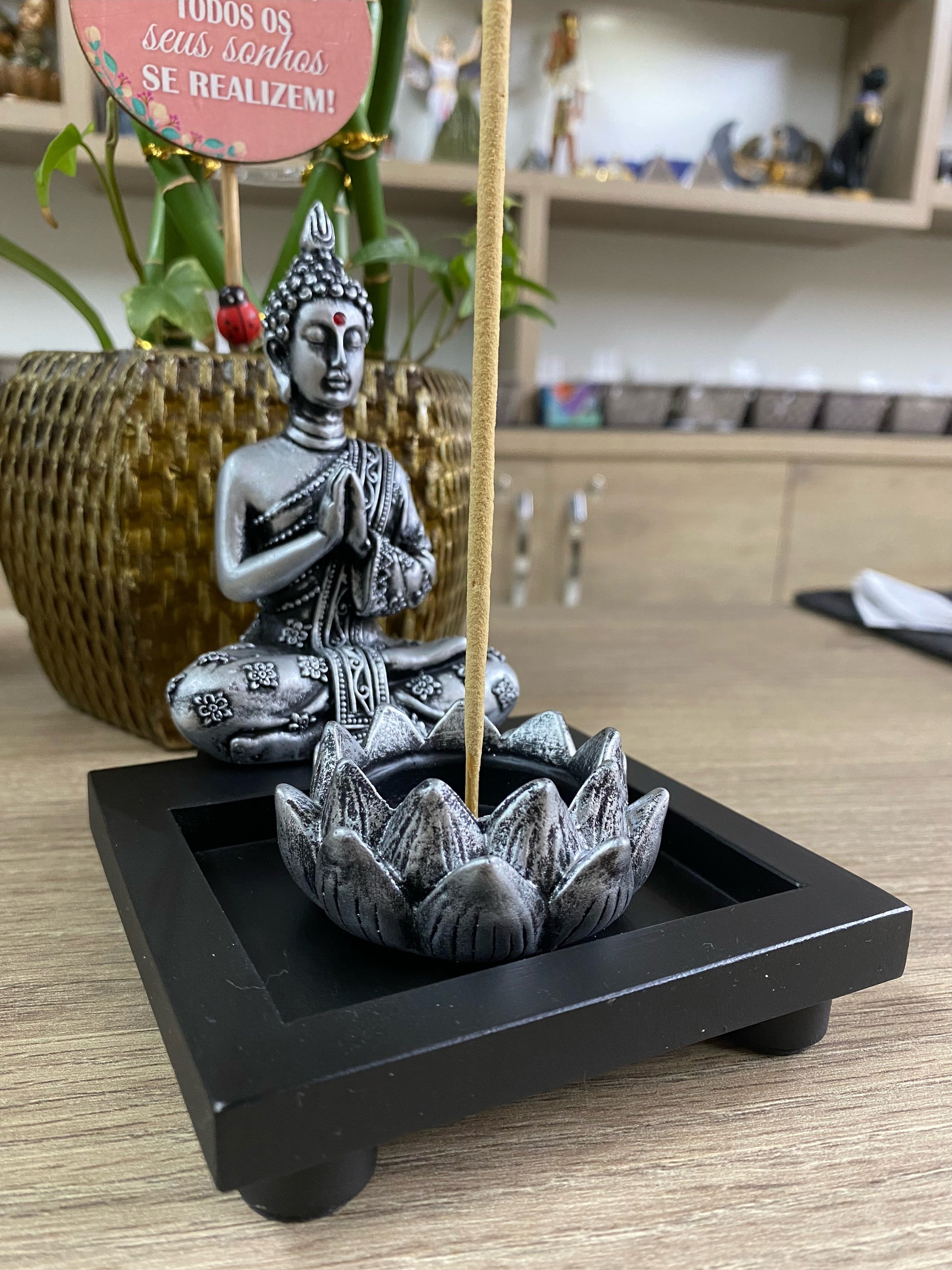 Eleve sua experiência de aromaterapia e meditação com nosso Incensário de Resina Maciça, uma obra artística que combina a serenidade de Buda com a beleza simbólica da flor de lótus.