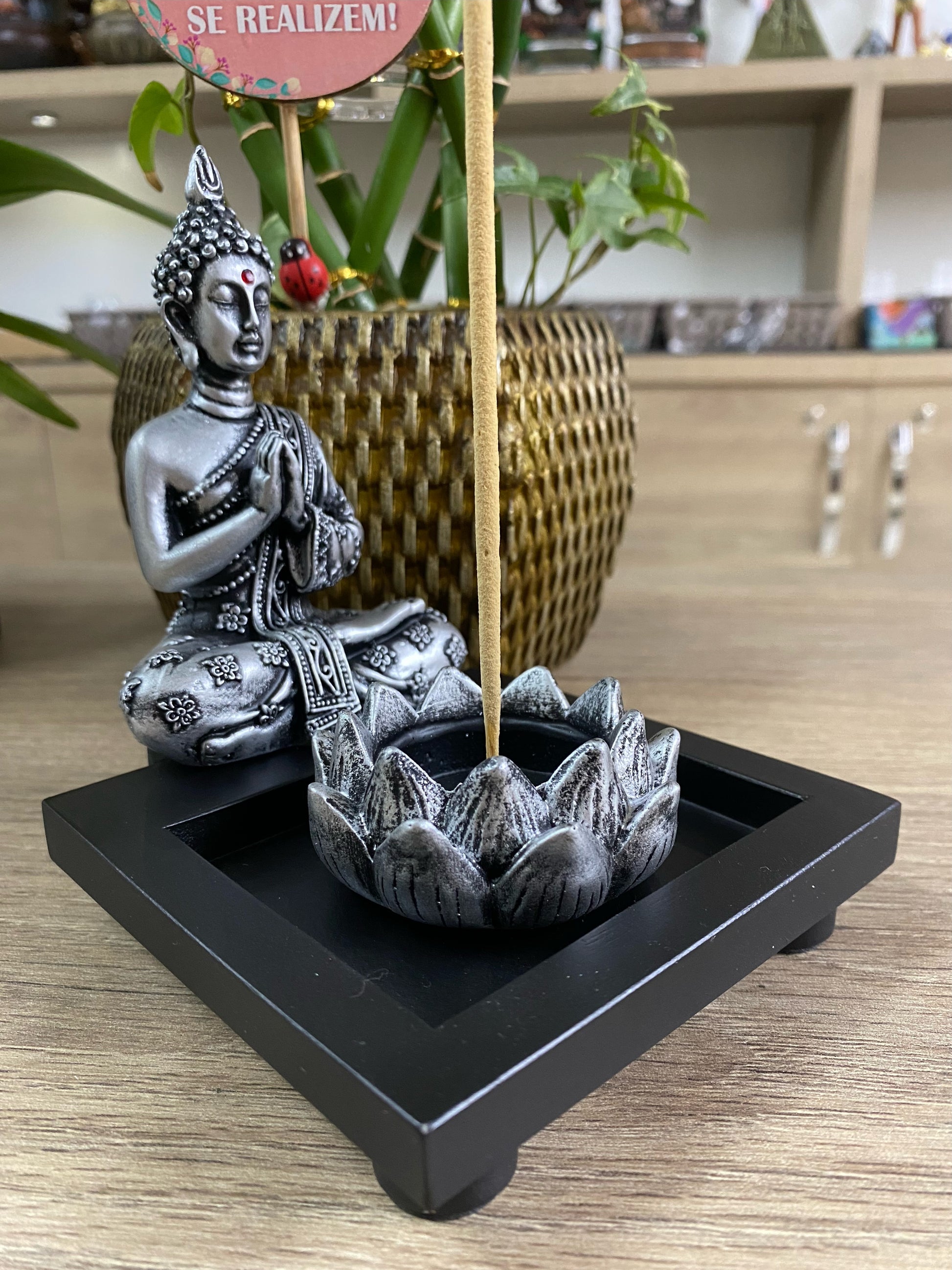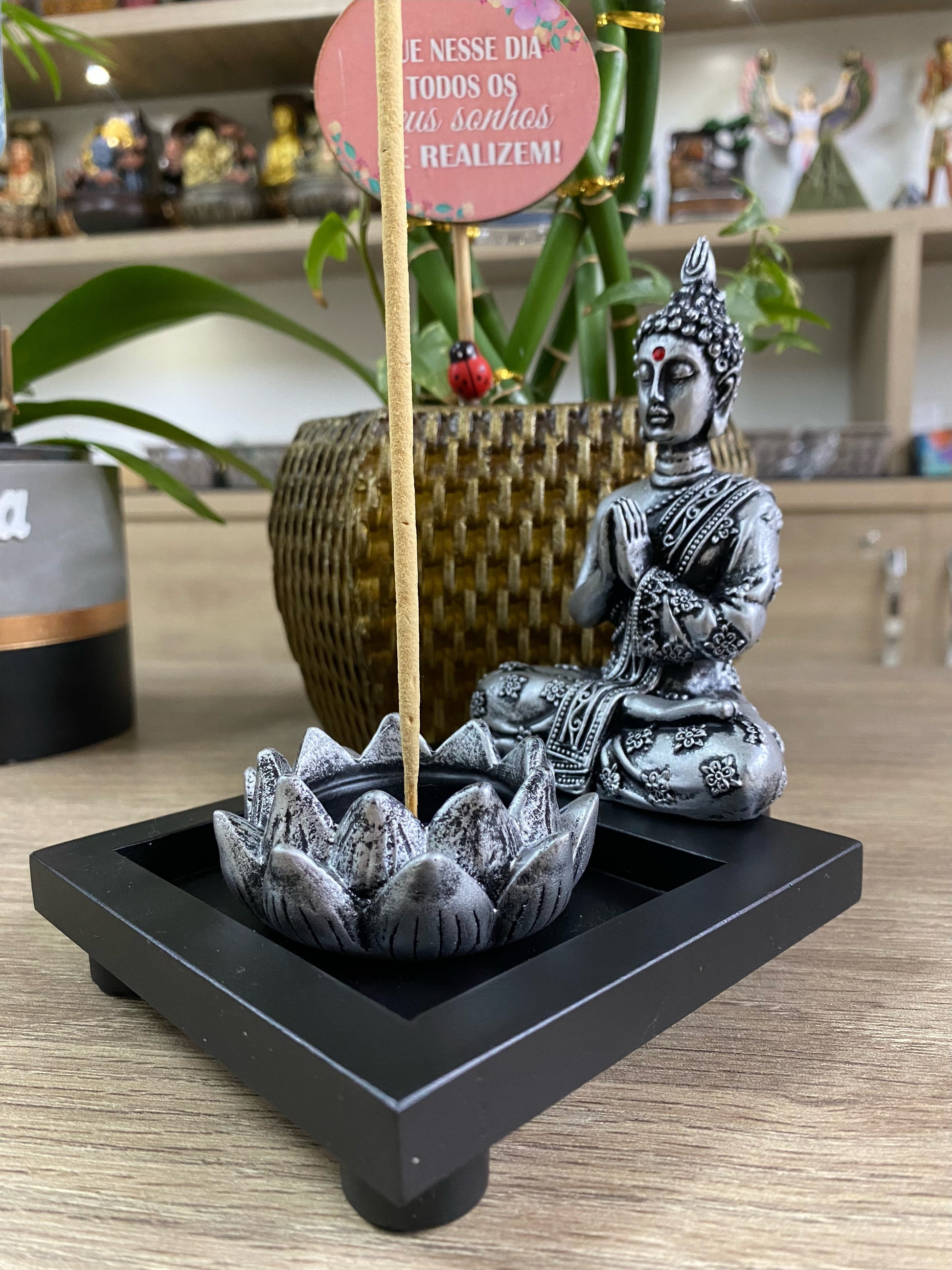 Incensário de Resina - Buda com Flor de Lótus Prata