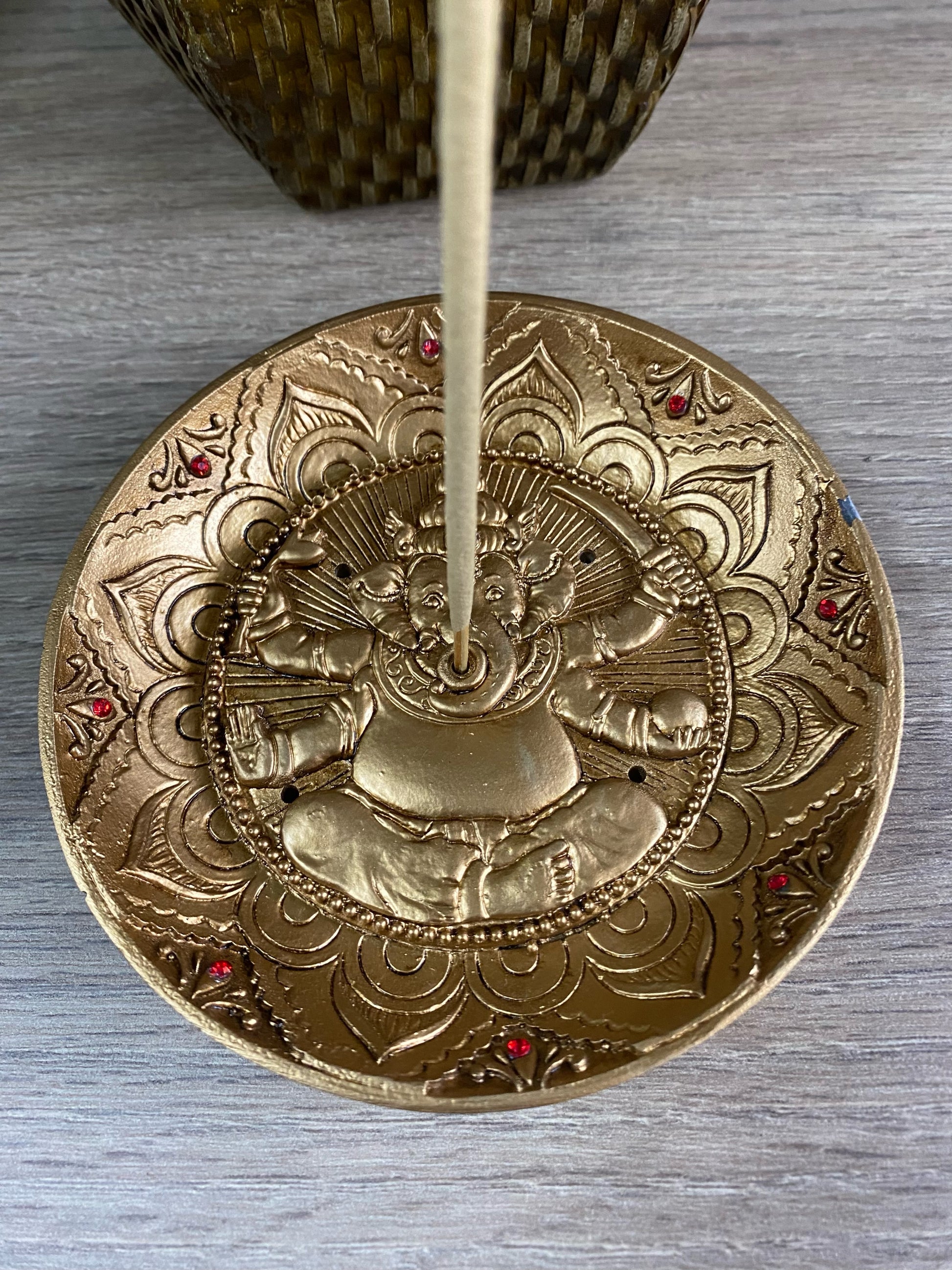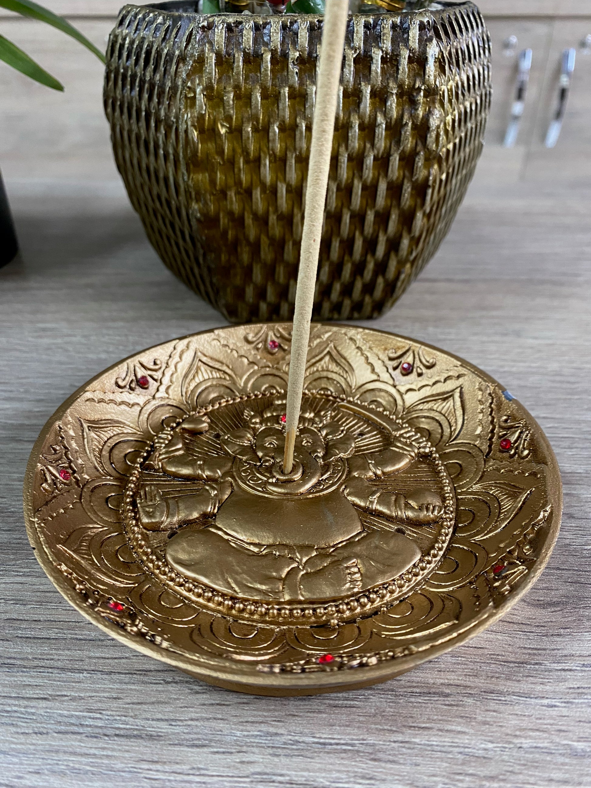 Incensário de Resina Prato - Ganesha Dourado