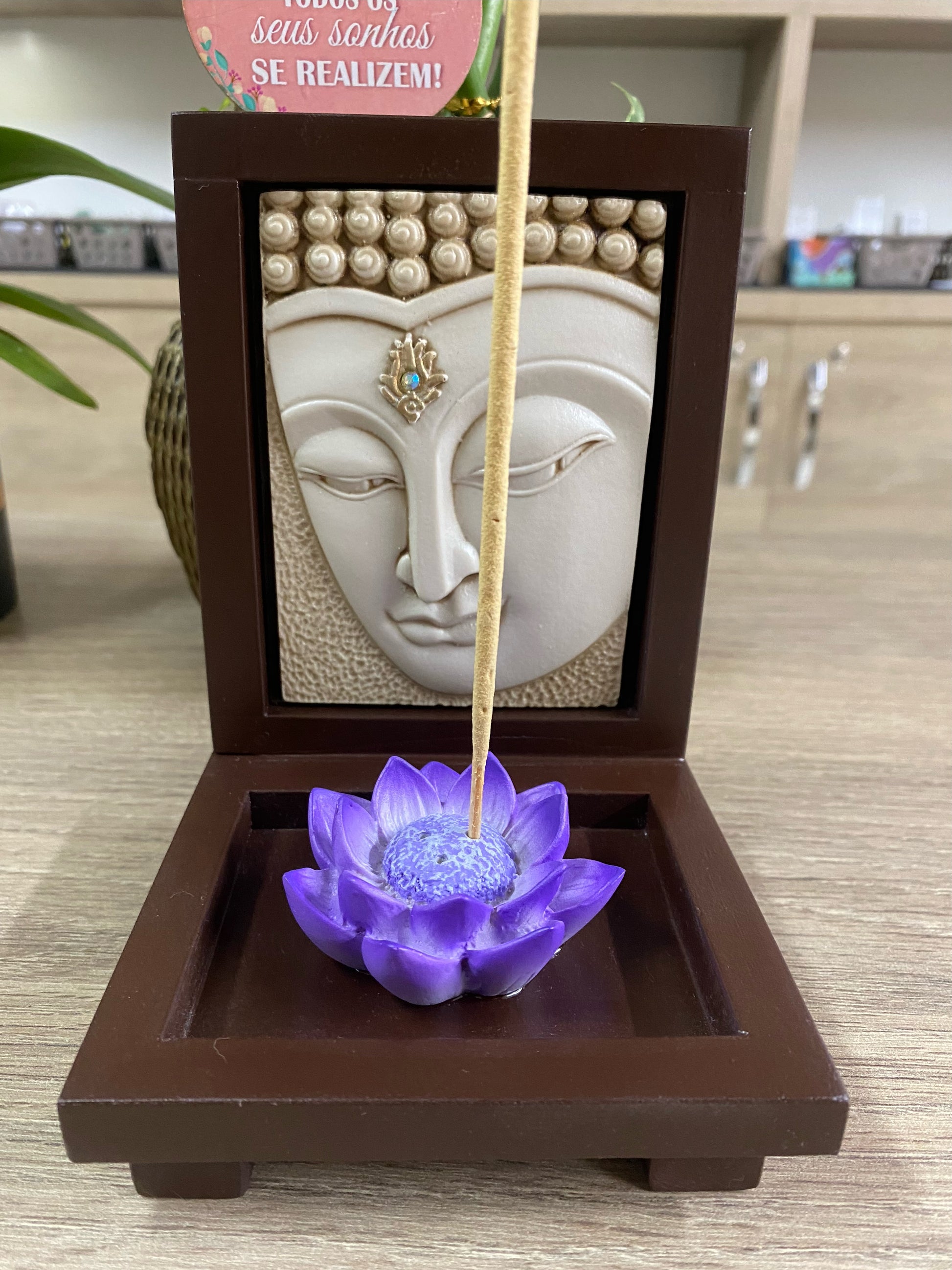 Incensário de Resina - Rosto do Buda com Flor de Lótus Lilás