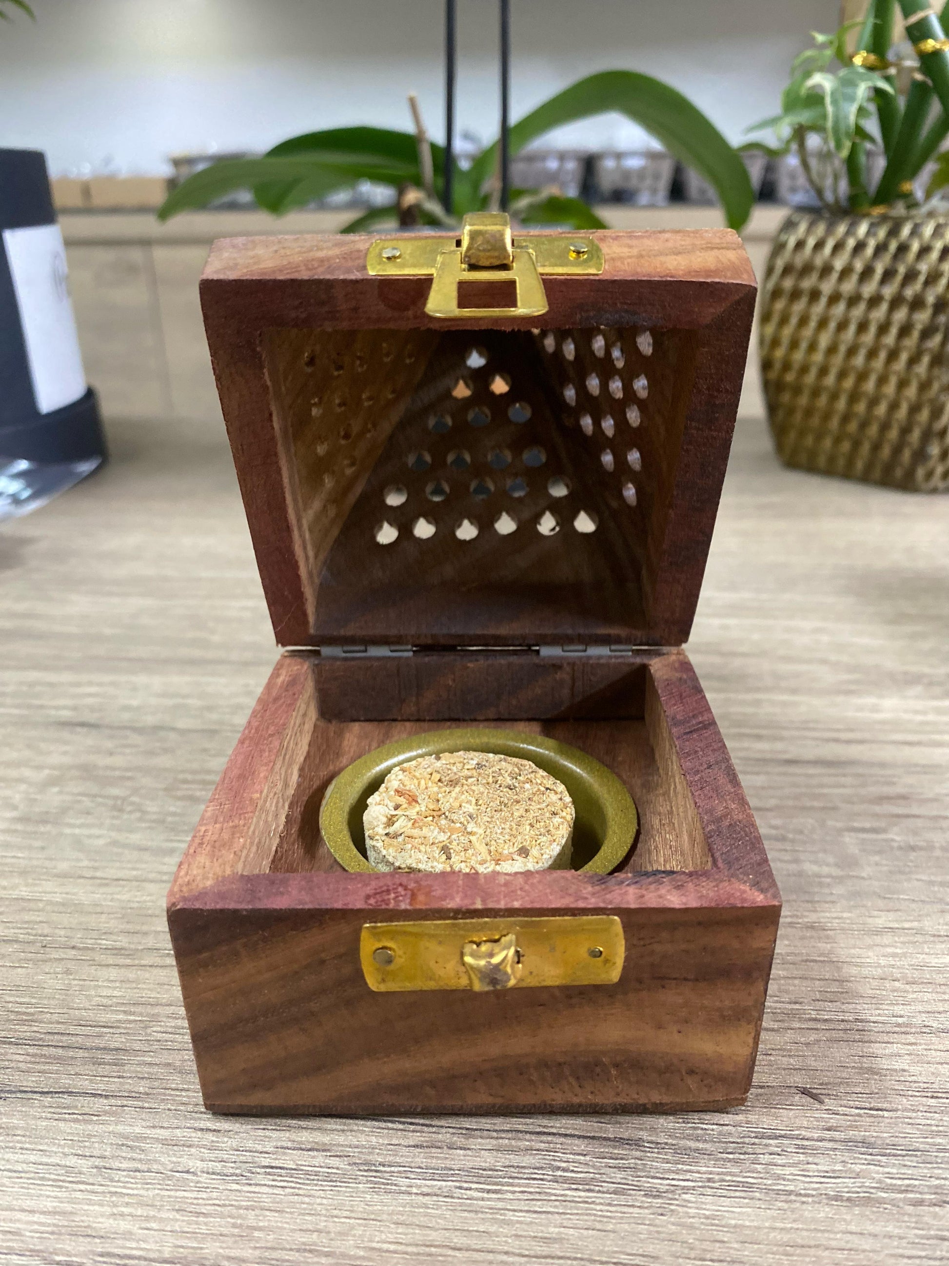 Nota: Devido às características únicas da madeira suar e ao artesanato manual, cada incensário pode apresentar variações na textura e coloração, tornando-o verdadeiramente especial.