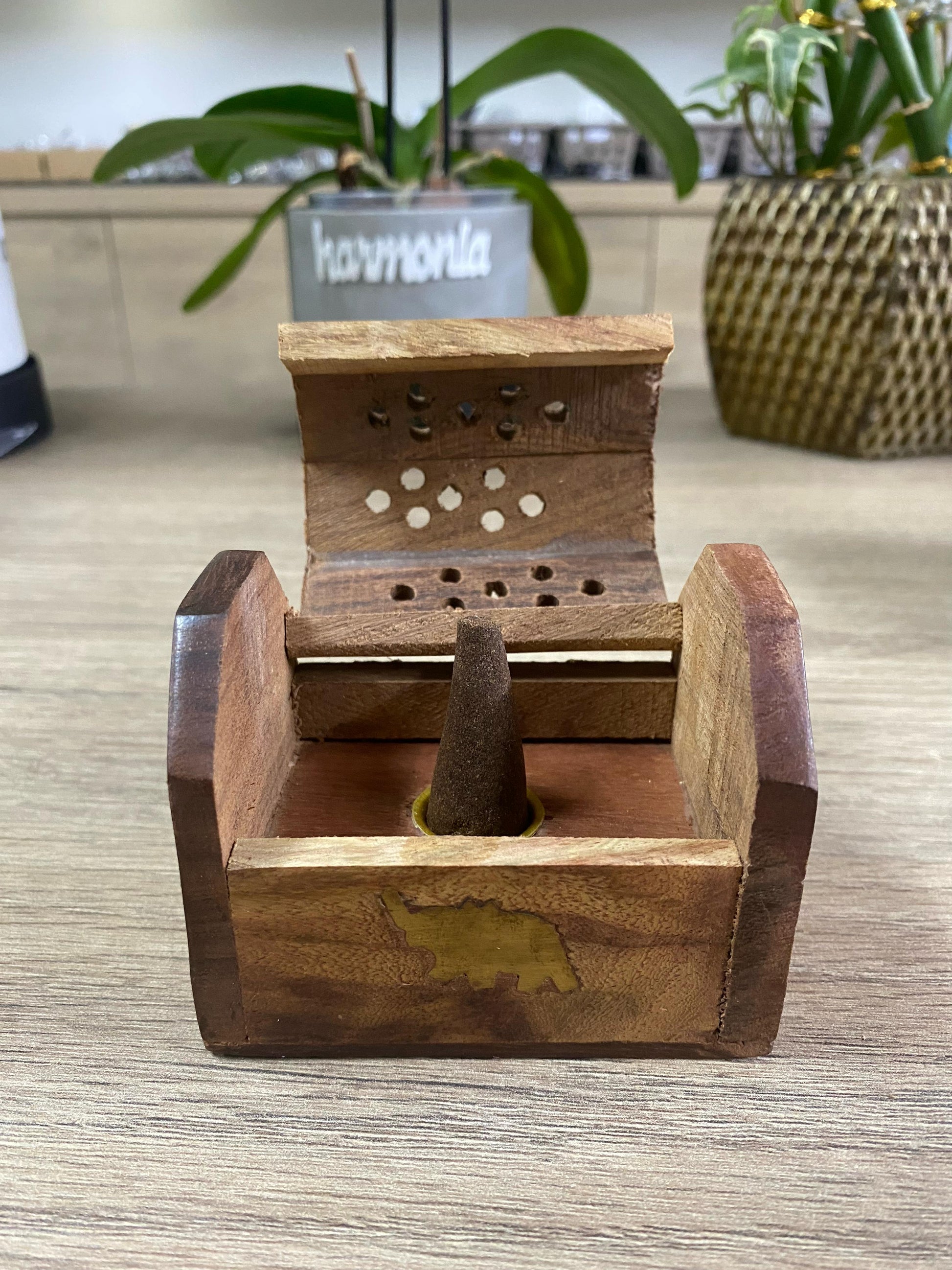 Incensário para Incenso de Cone - Madeira Suar de Bali