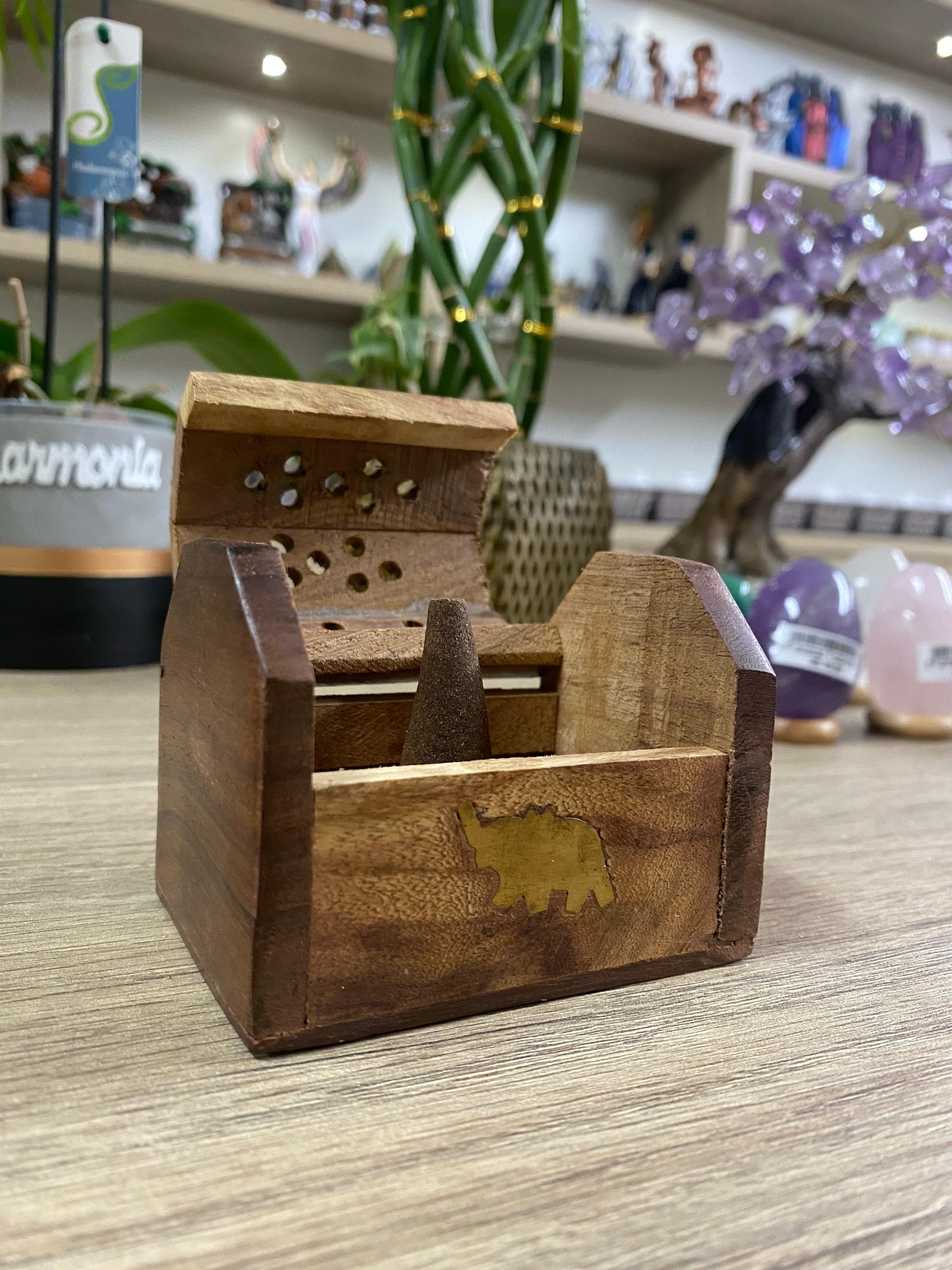 Nota: A madeira suar é valorizada por sua textura única e tons naturais. Cada incensário pode apresentar variações na aparência, tornando-o verdadeiramente exclusivo.