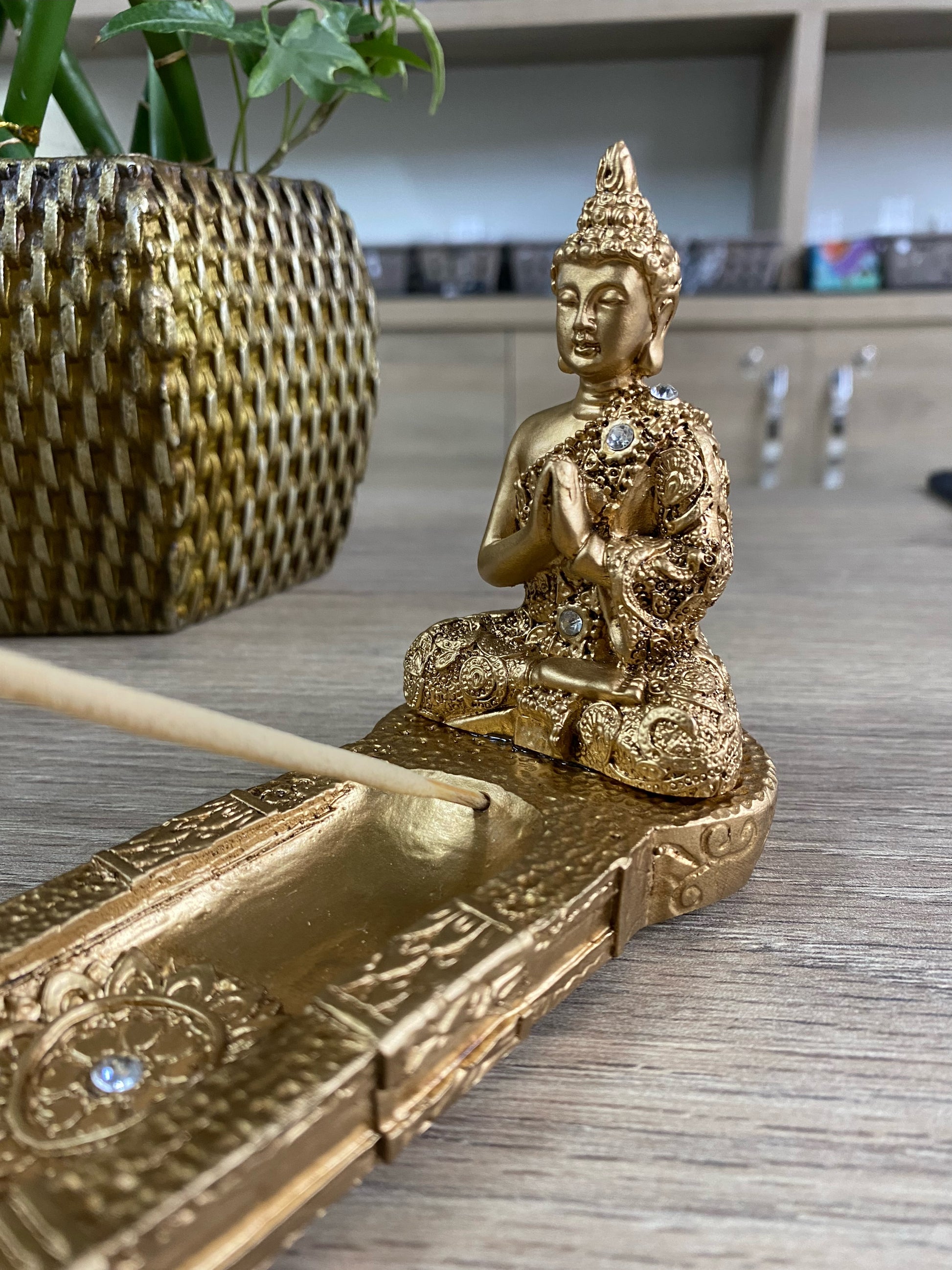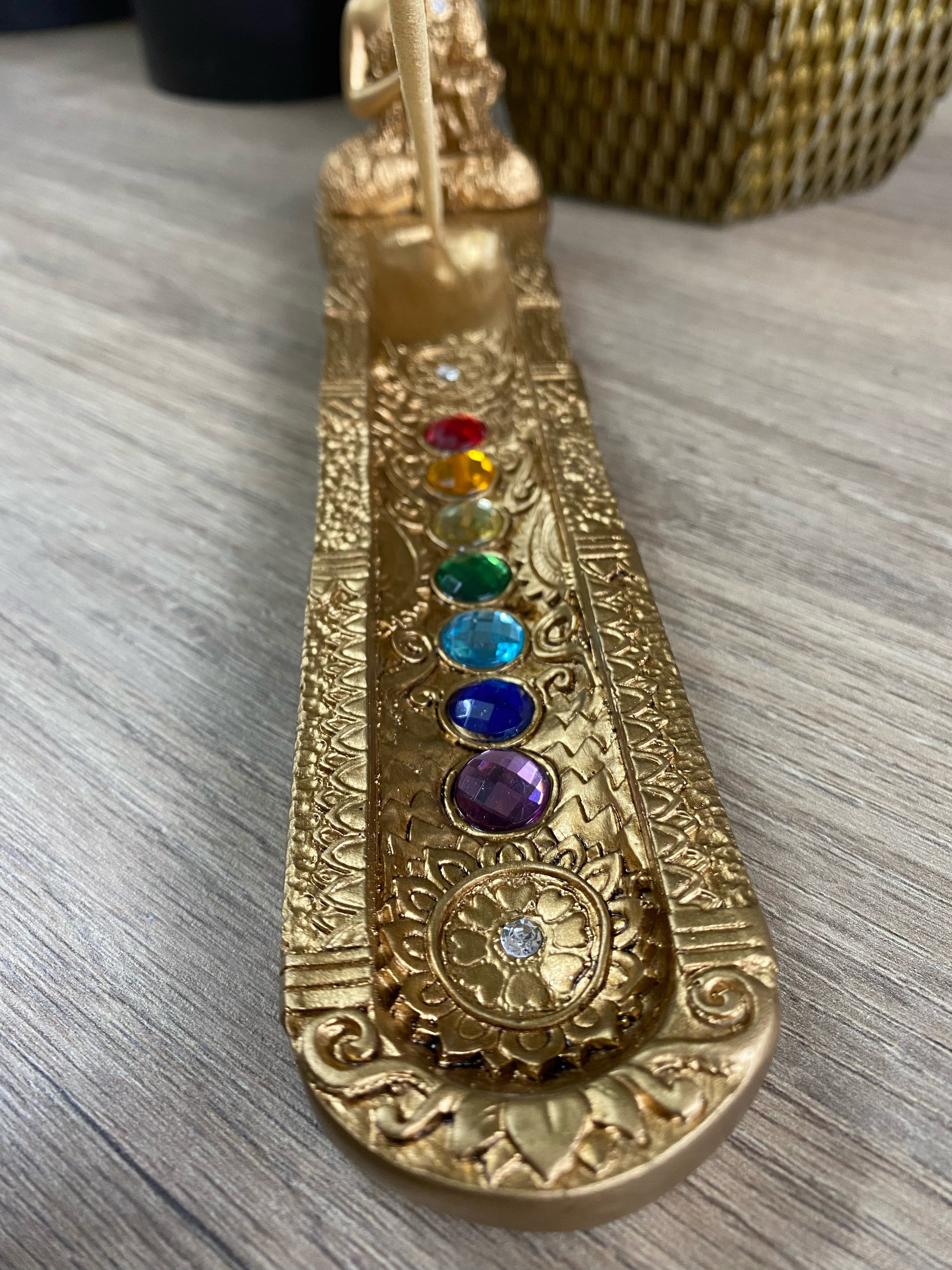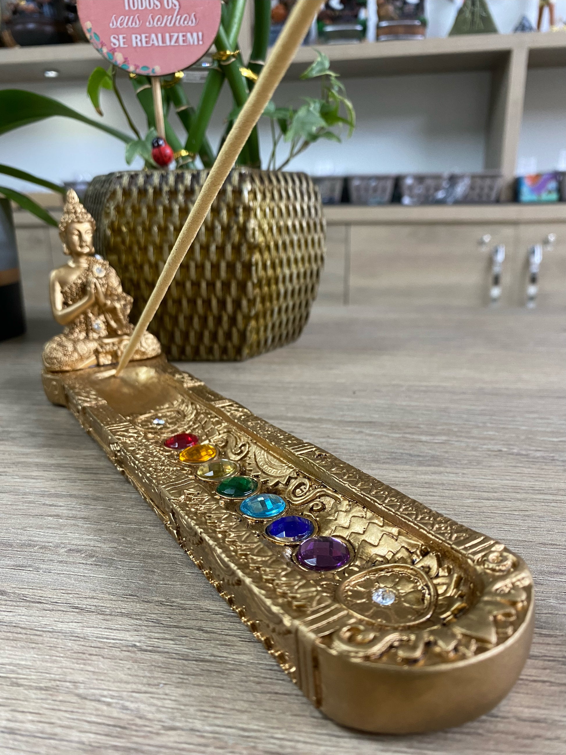 Incensário Régua de Resina - Buda e 7 Chakras Dourado