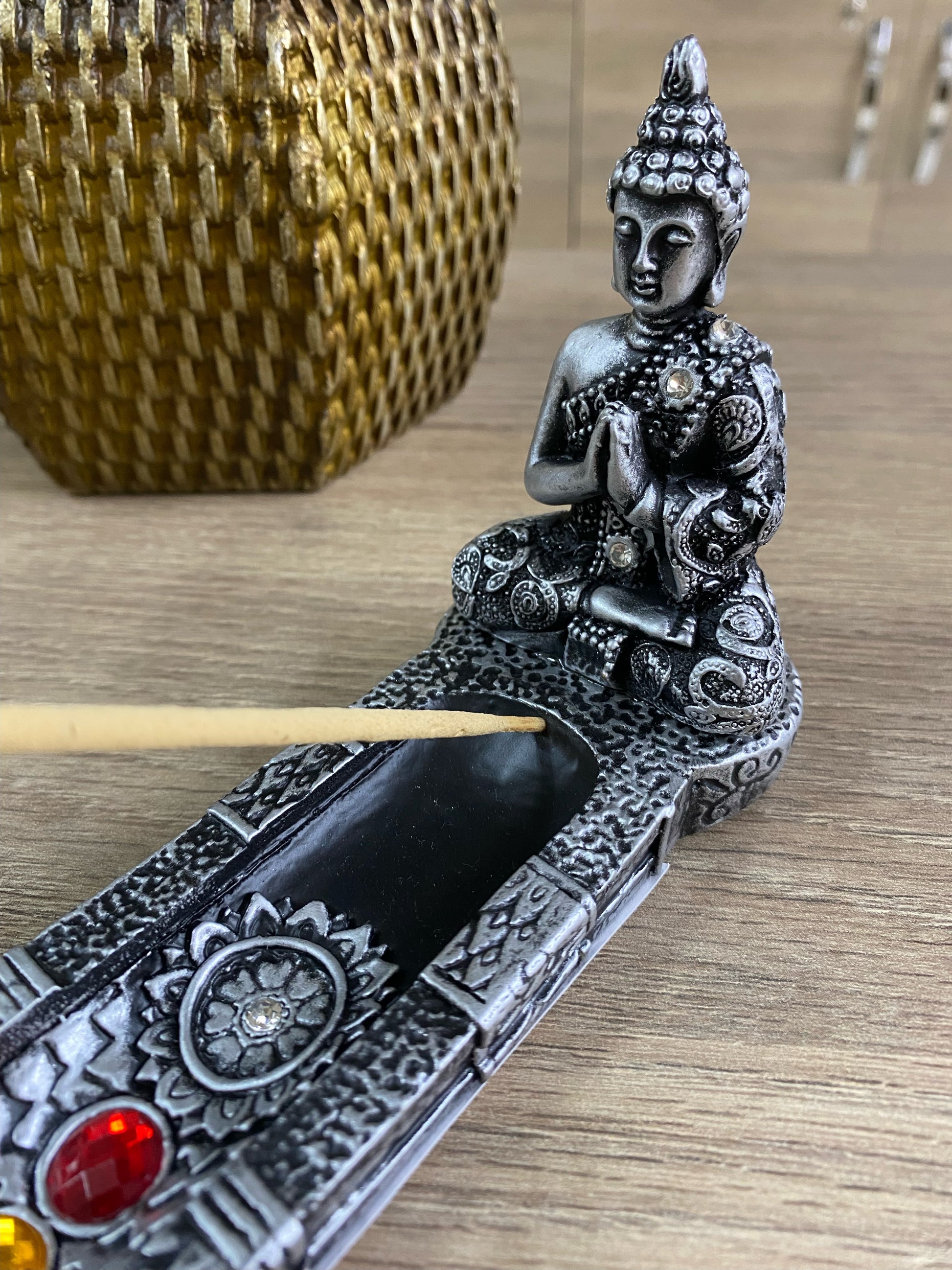 Eleve sua prática espiritual e aromaterapia com nosso Incensário Buda com 7 Chakras, uma peça encantadora esculpida em resina de alta qualidade.
