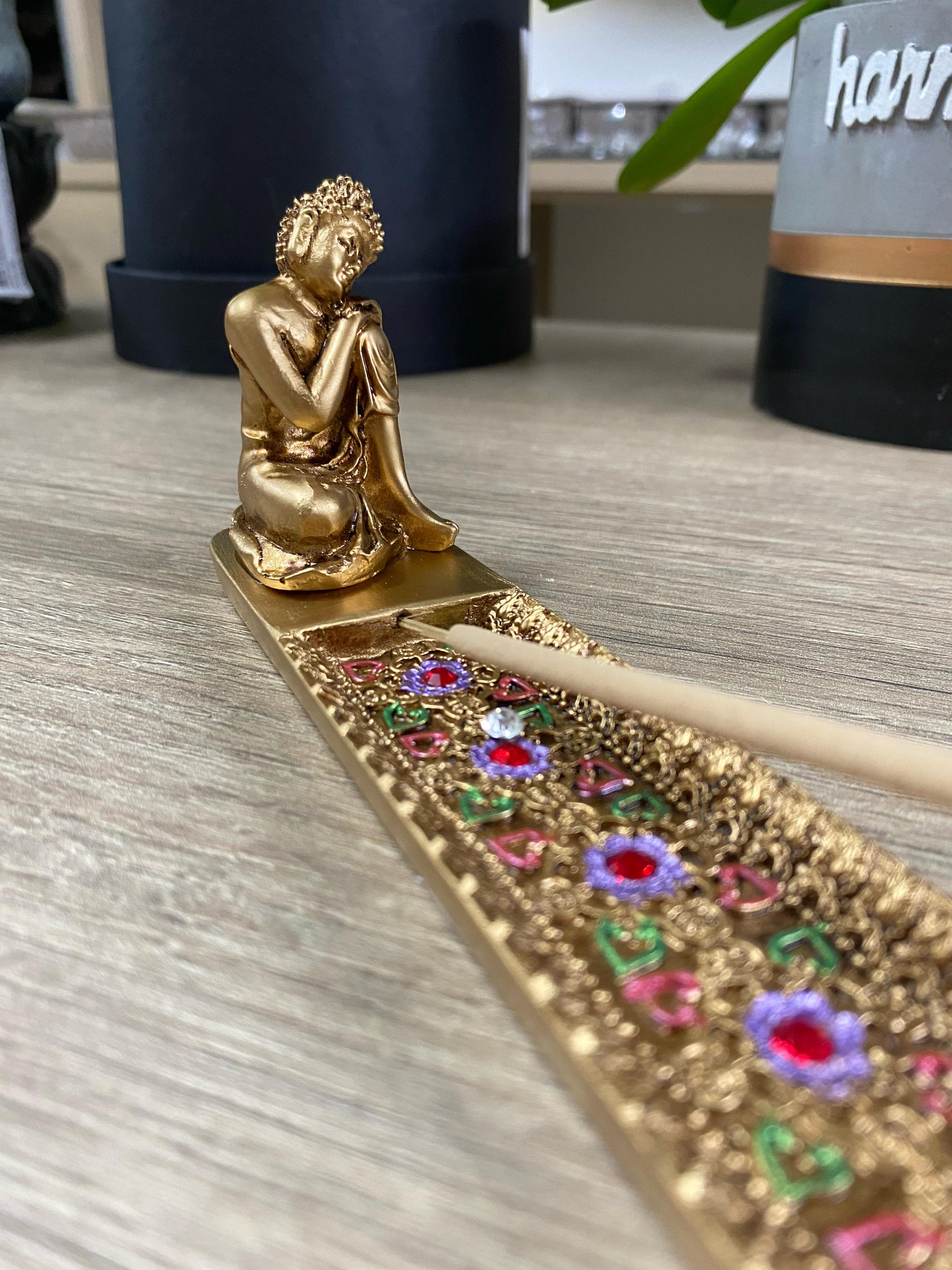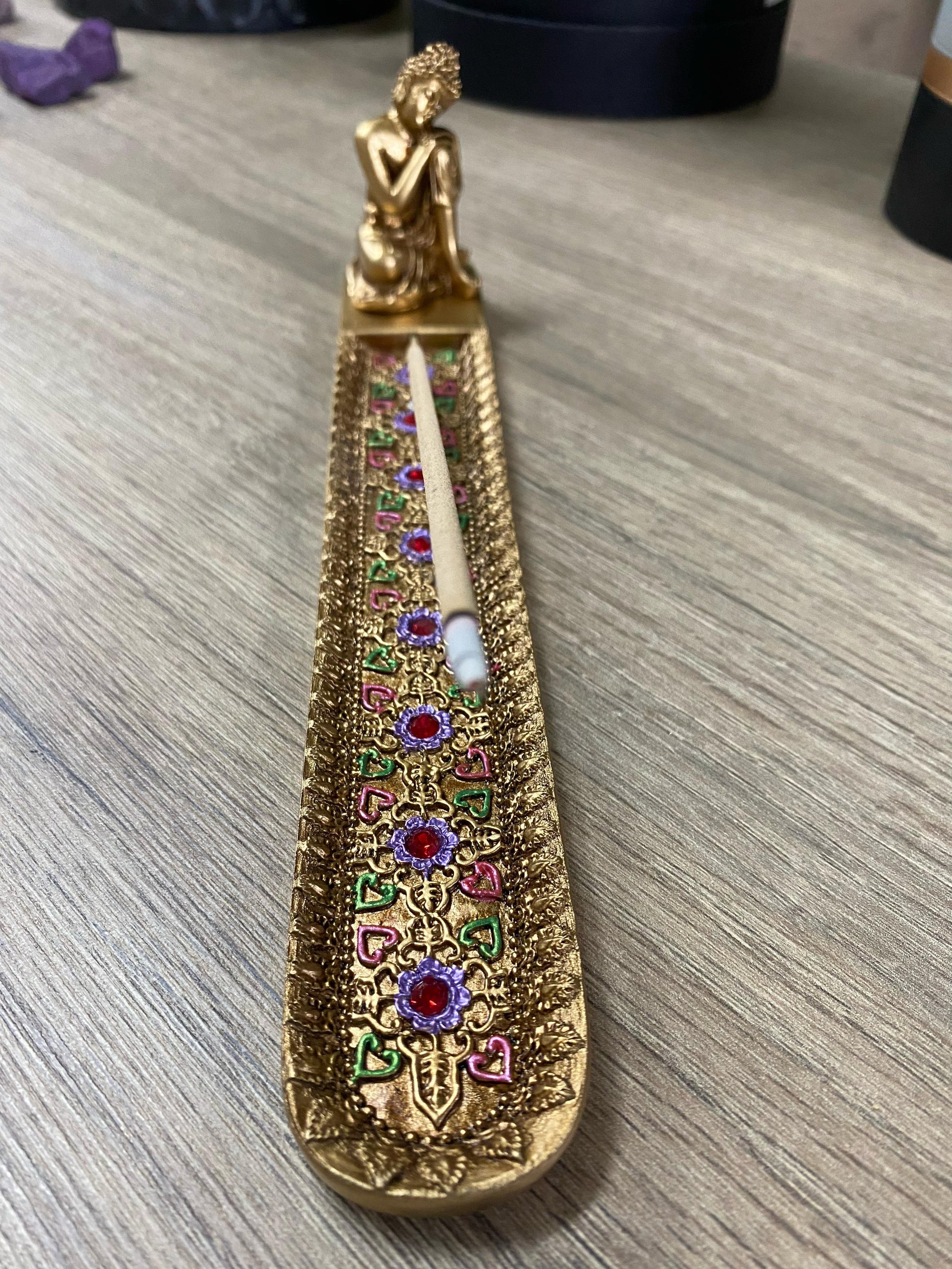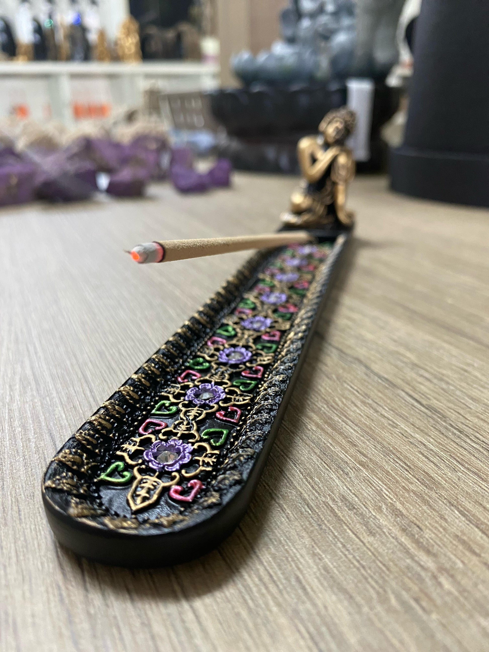 - Toque de Brilho: Os detalhes em strass adicionam um toque de brilho e sofisticação, tornando este incensário uma peça única de decoração.