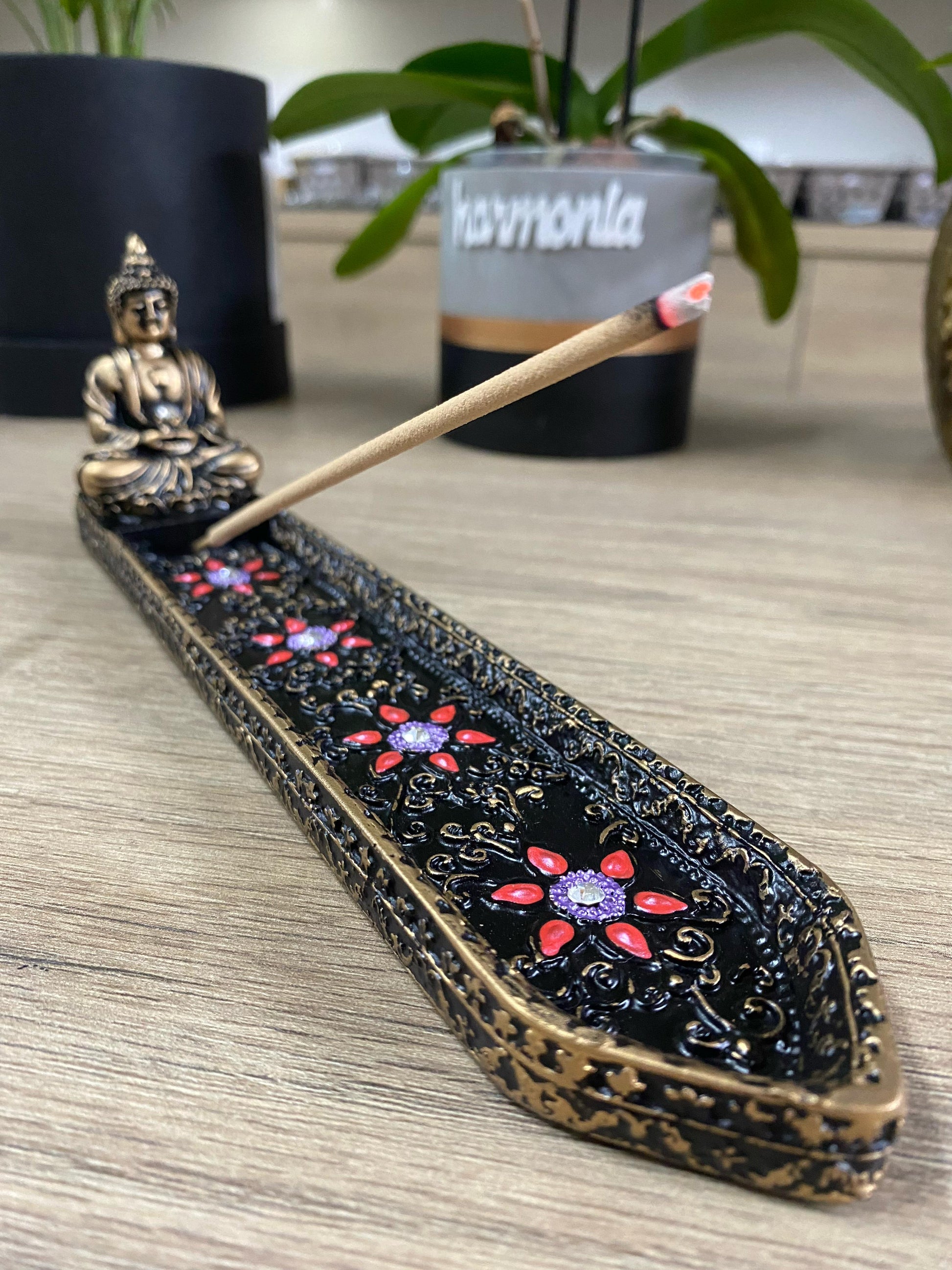 Integre a harmonia e a beleza em suas práticas espirituais com o Incensário de Resina com Buda. Permita que essa peça única aprimore a atmosfera do seu espaço, proporcionando momentos de serenidade e conexão consigo mesmo.