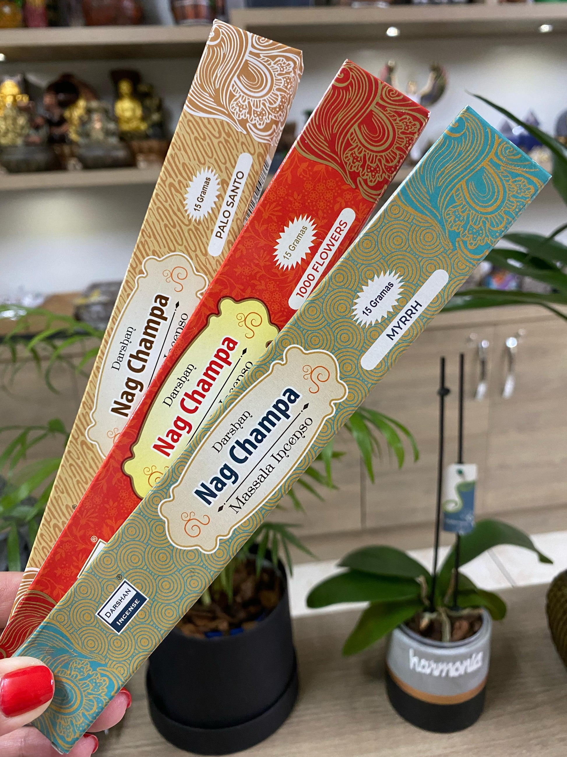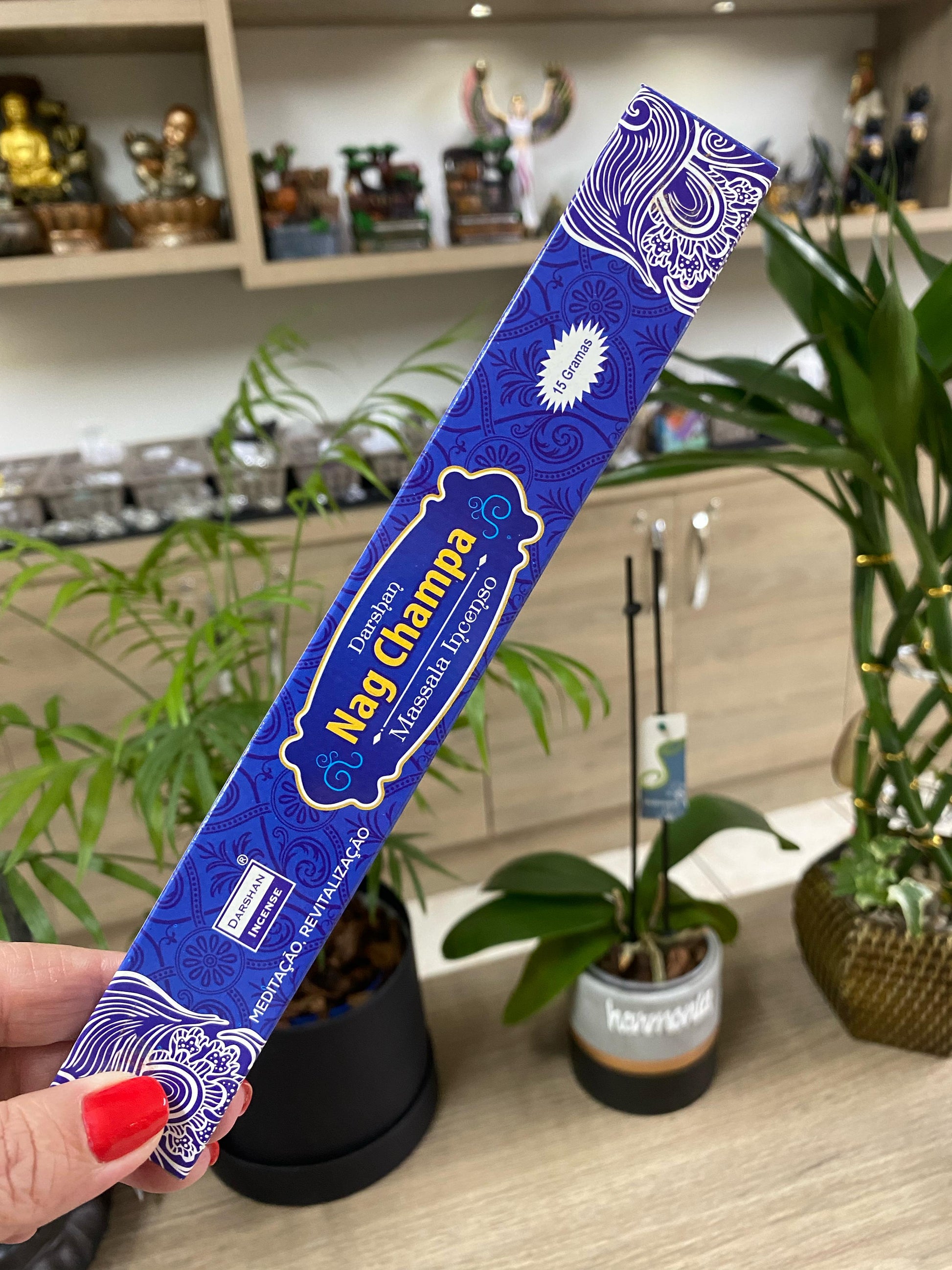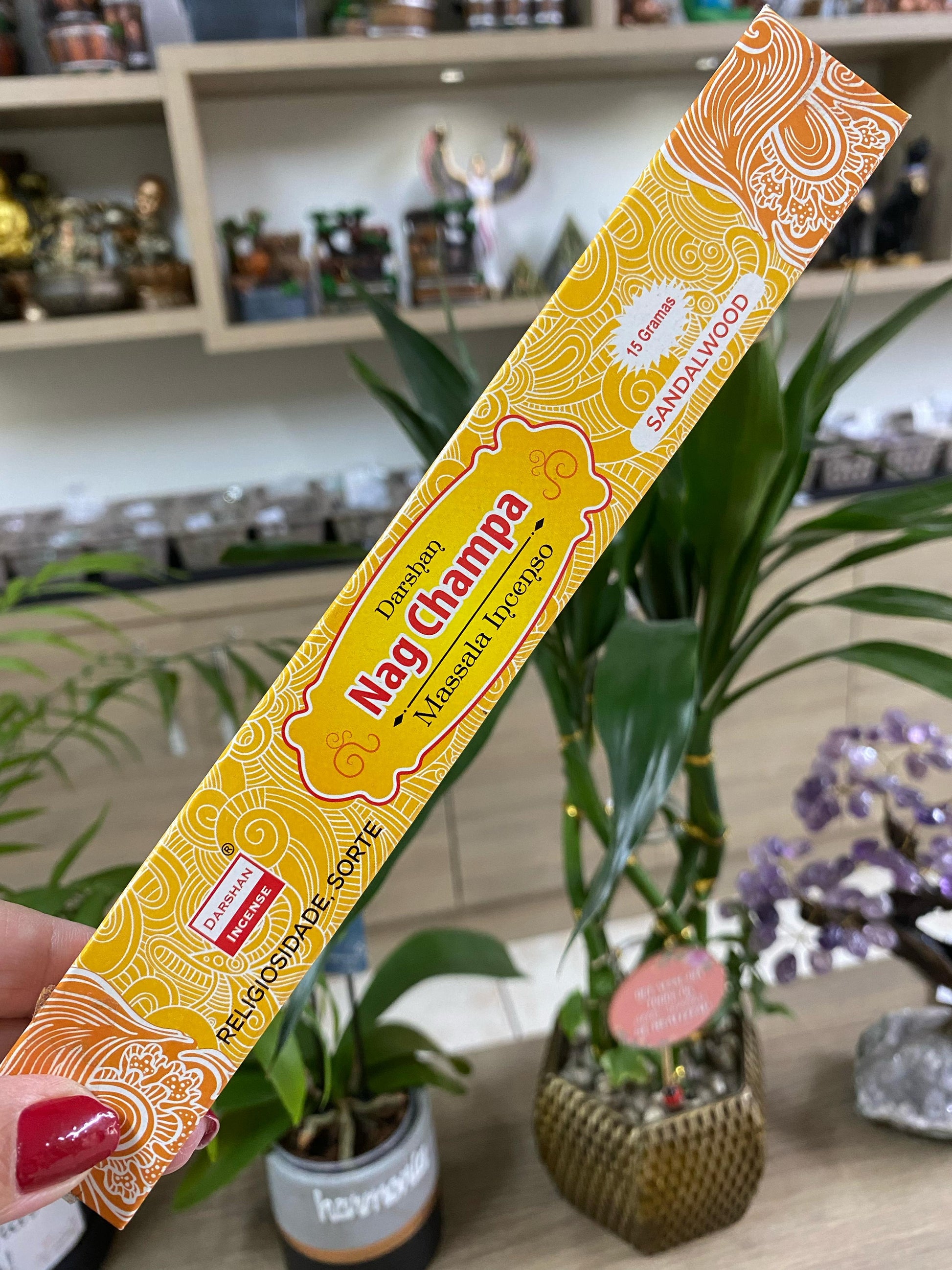 Explore uma variedade de fragrâncias envolventes com o Incenso Nag Champa da marca Darshan. Cada caixa contém 15g, proporcionando uma experiência aromática duradoura que eleva o ambiente com notas distintas e envolventes.