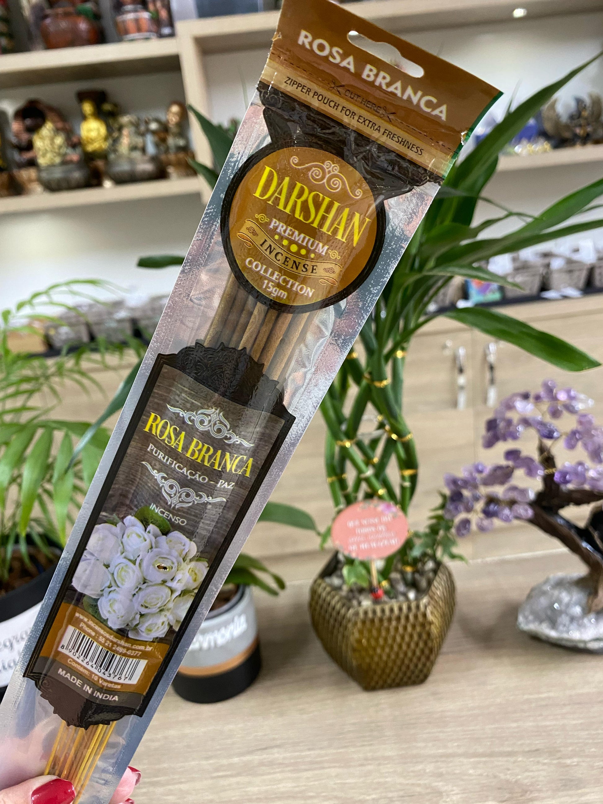 Explore o mundo sensorial e espiritual com o Incenso Darshan Premium, oferecendo uma variedade de aromas que enriquecem seu ambiente e elevam sua experiência de bem-estar.