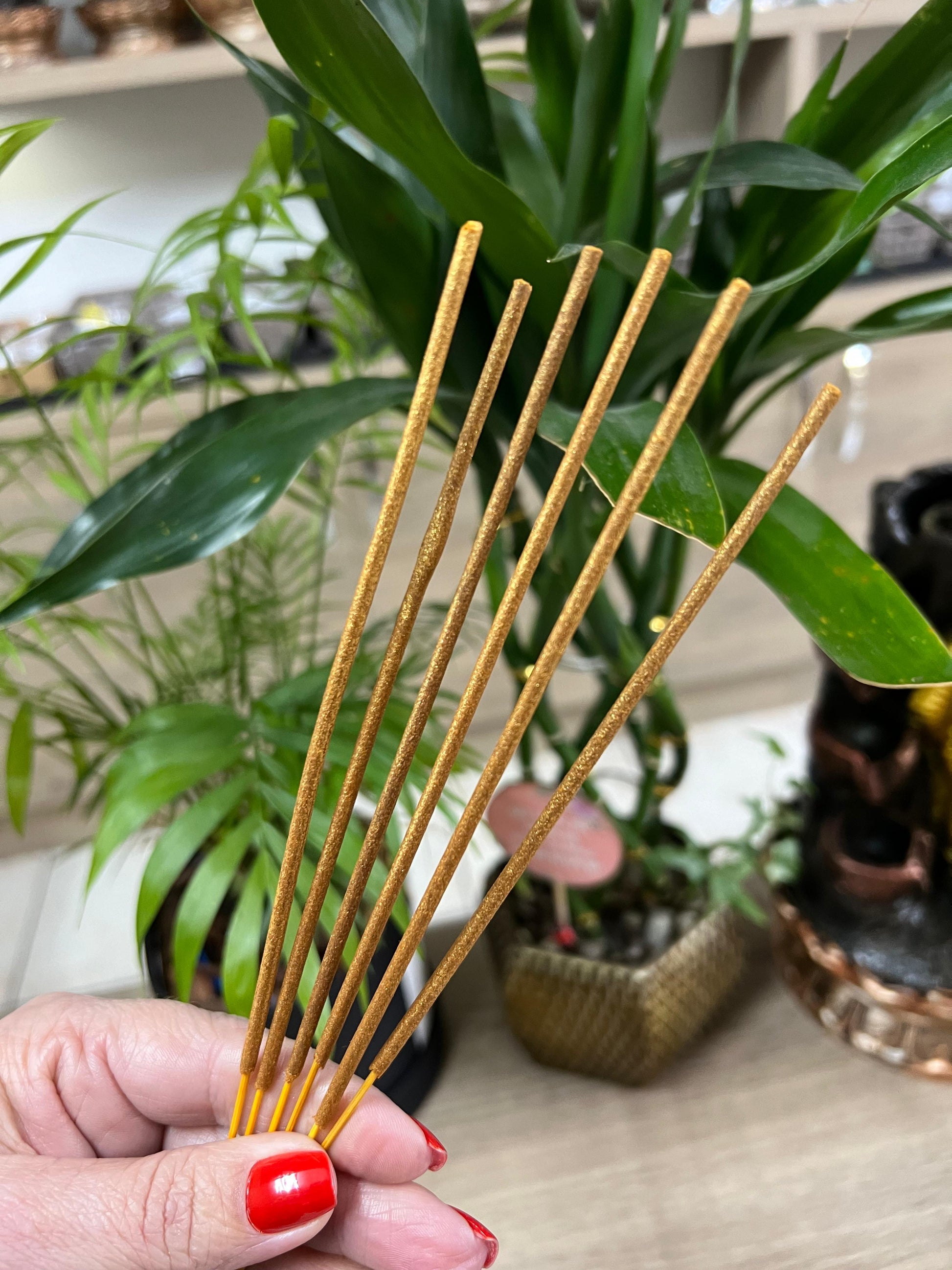 - 1 vareta de Incenso da Riqueza, que brilha como o ouro, simbolizando opulência