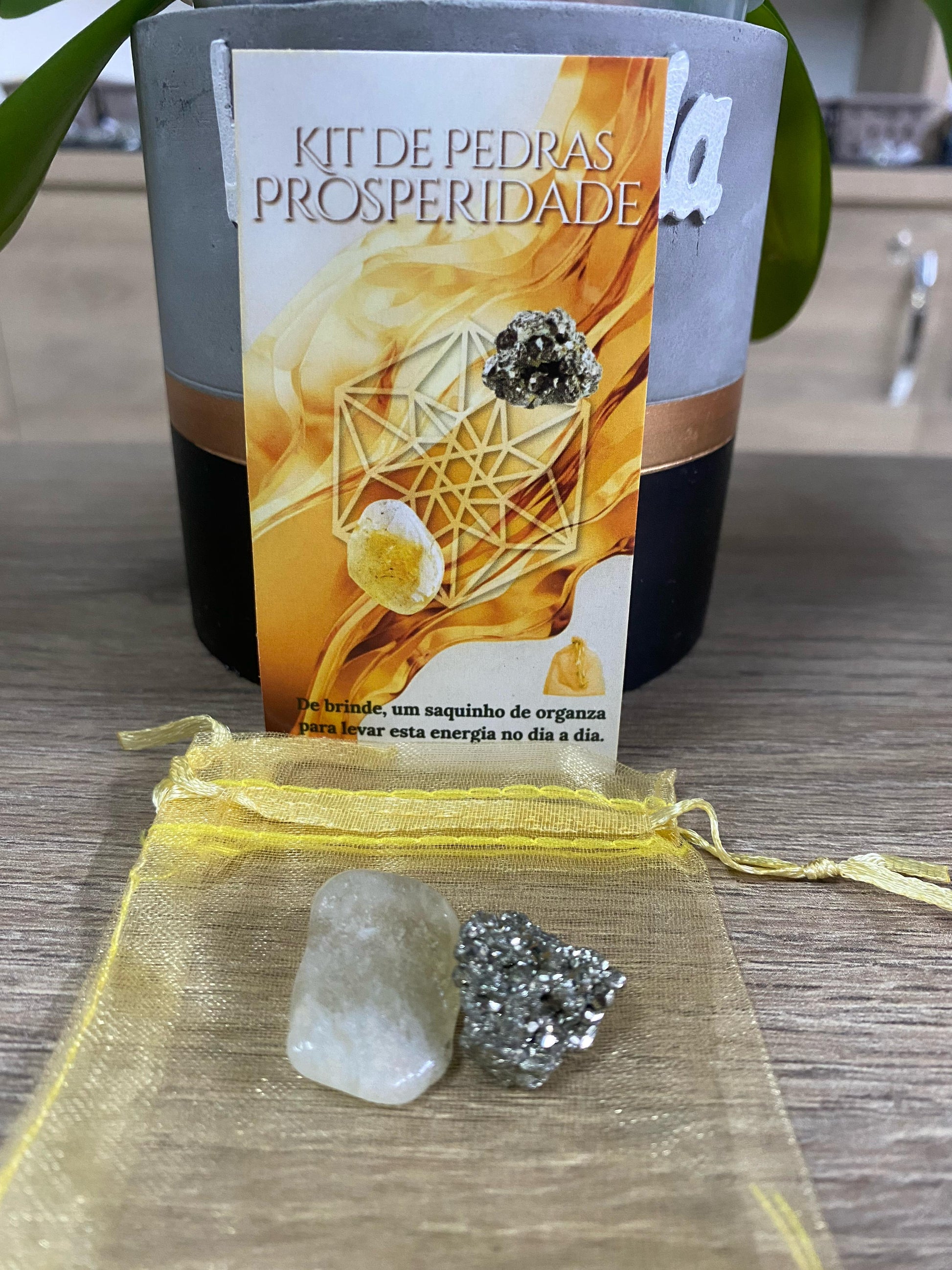 Atraia a prosperidade e a abundância com o nosso Kit Prosperidade, que apresenta a poderosa combinação de Pirita e Citrino. Essas pedras foram escolhidas para estimular a energia da riqueza, atrair sucesso financeiro e criar uma atmosfera de prosperidade em sua vida.