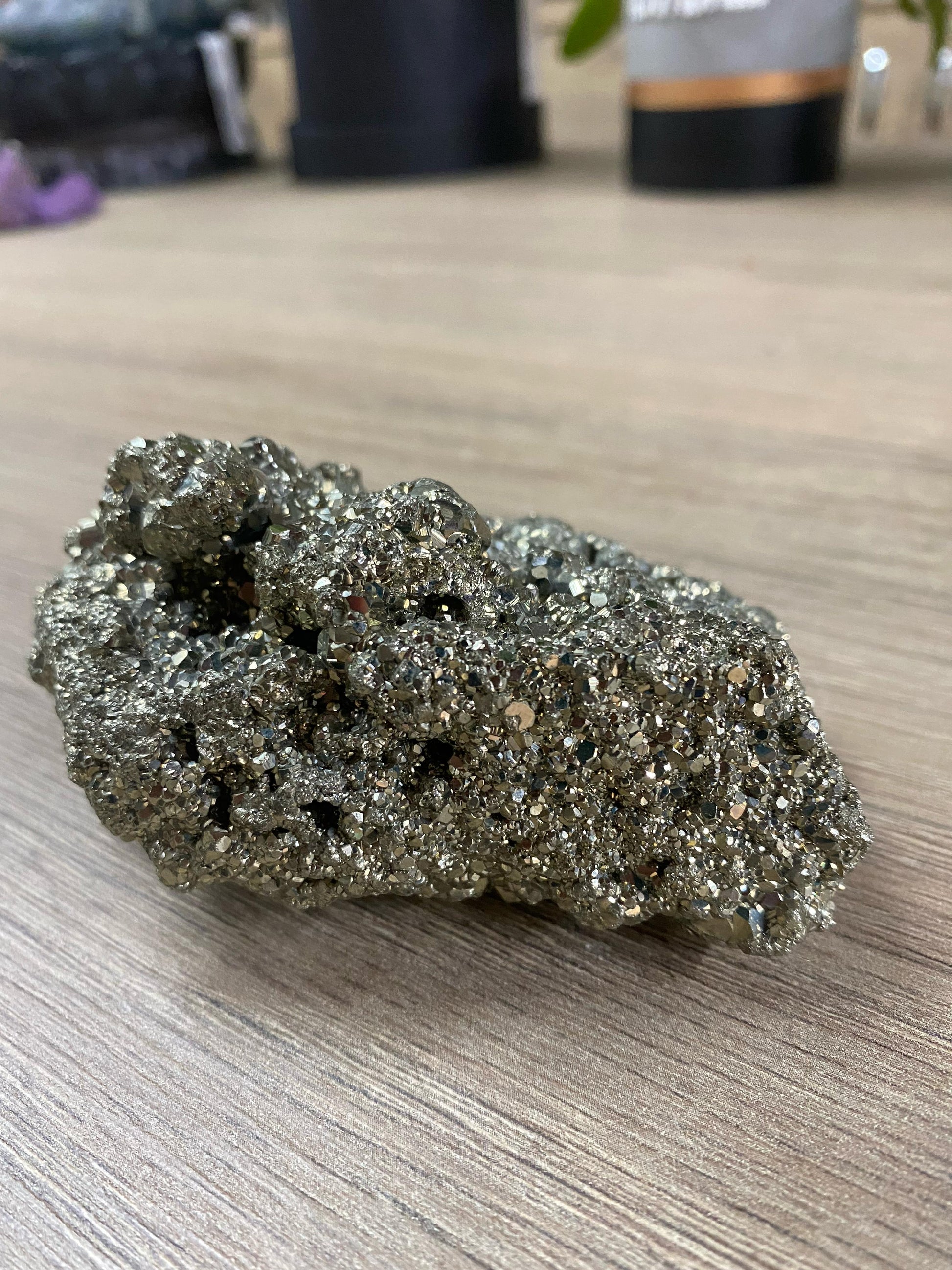 - Decoração com Significado: Além de sua beleza estética, a pirita adiciona um toque de significado e positividade à decoração.