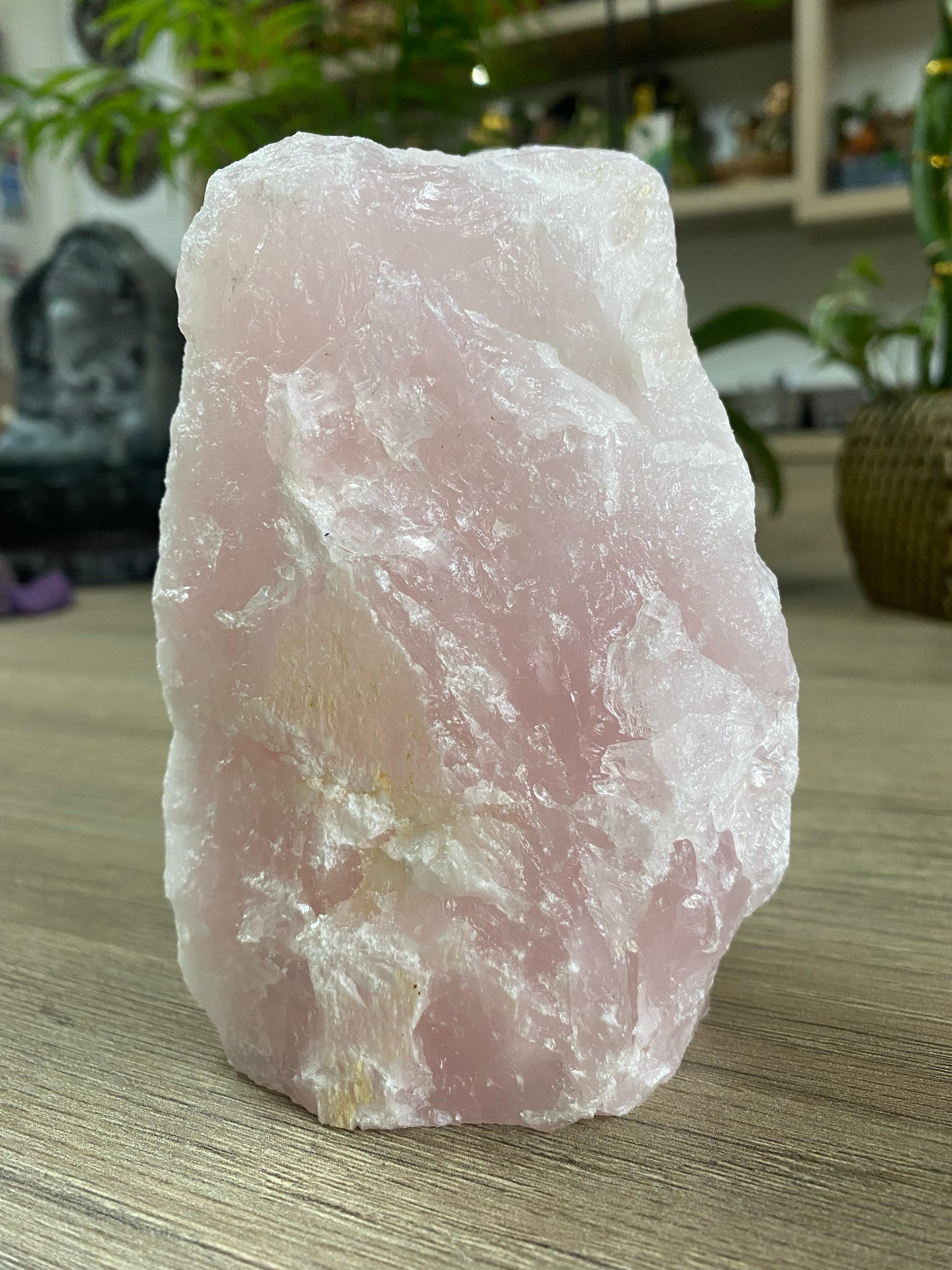 - Além de ser uma bela adição estética, acredita-se que o quartzo rosa traz vibrações calmantes e purificadoras para o ambiente, tornando-a perfeita para espaços de estar, escritórios ou áreas de meditação.