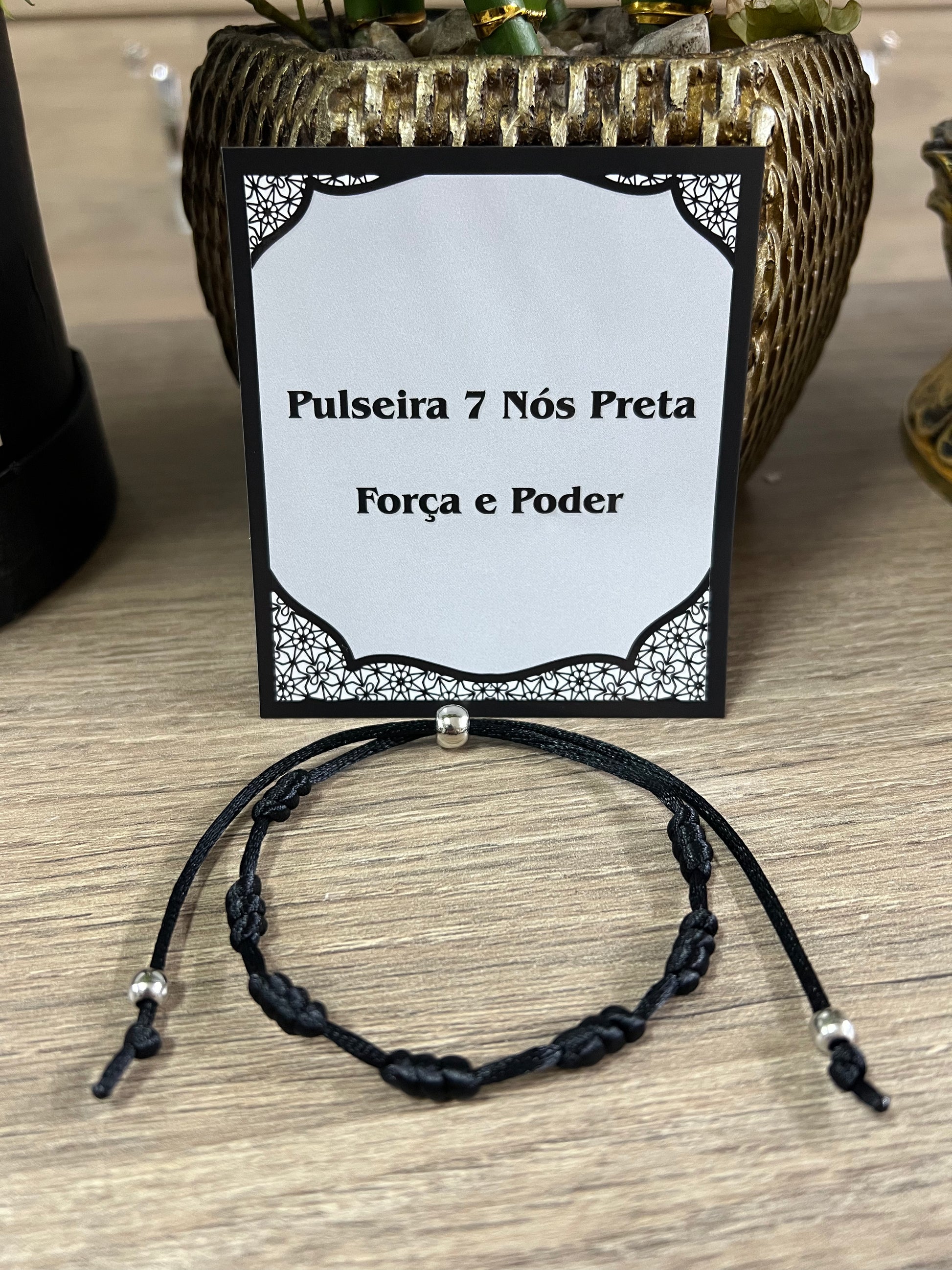 Feita com fio preto resistente e acabamento ajustável, essa pulseira une estilo e espiritualidade em um só item. Cada um dos 7 nós simboliza uma barreira contra energias negativas, criando um escudo de proteção ao redor de quem a usa.