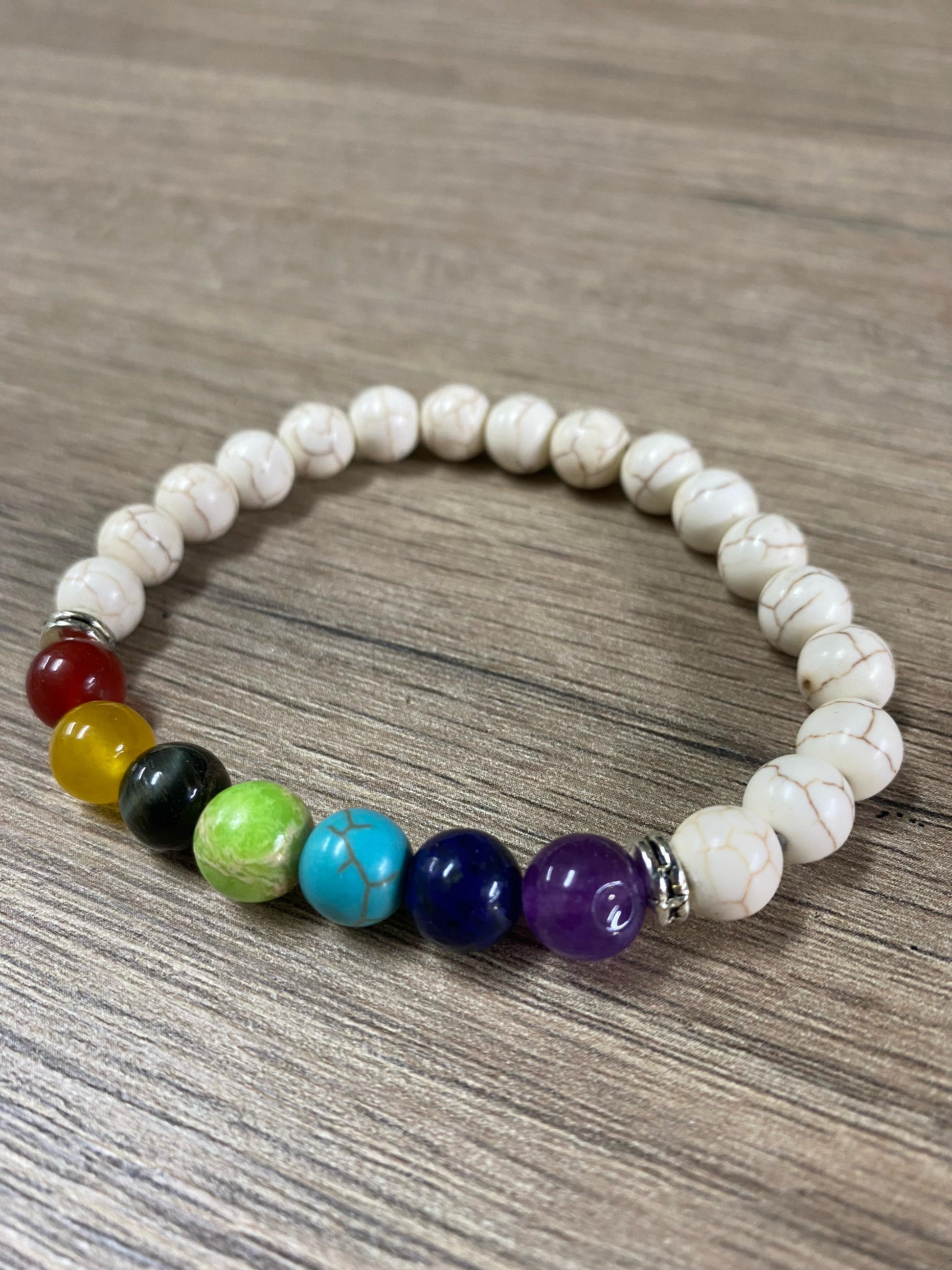 Pulseira de Howlita com Pedras dos 7 Chakras