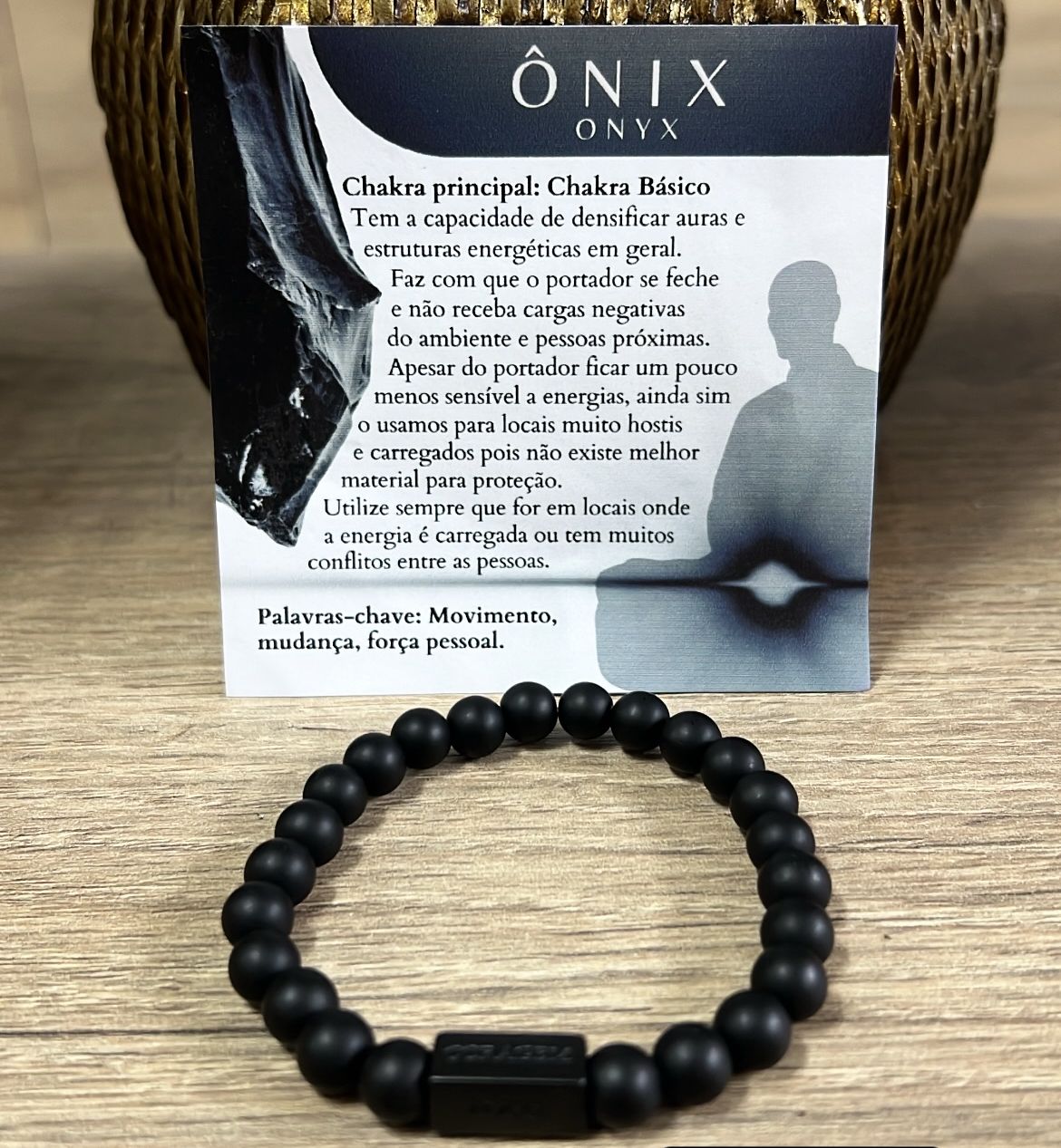 Eleve seu visual com a elegância e a força da Pulseira de Pedra Ônix Negra. Feita com pedras naturais de alta qualidade, essa pulseira é perfeita para quem busca um acessório sofisticado e cheio de significado.