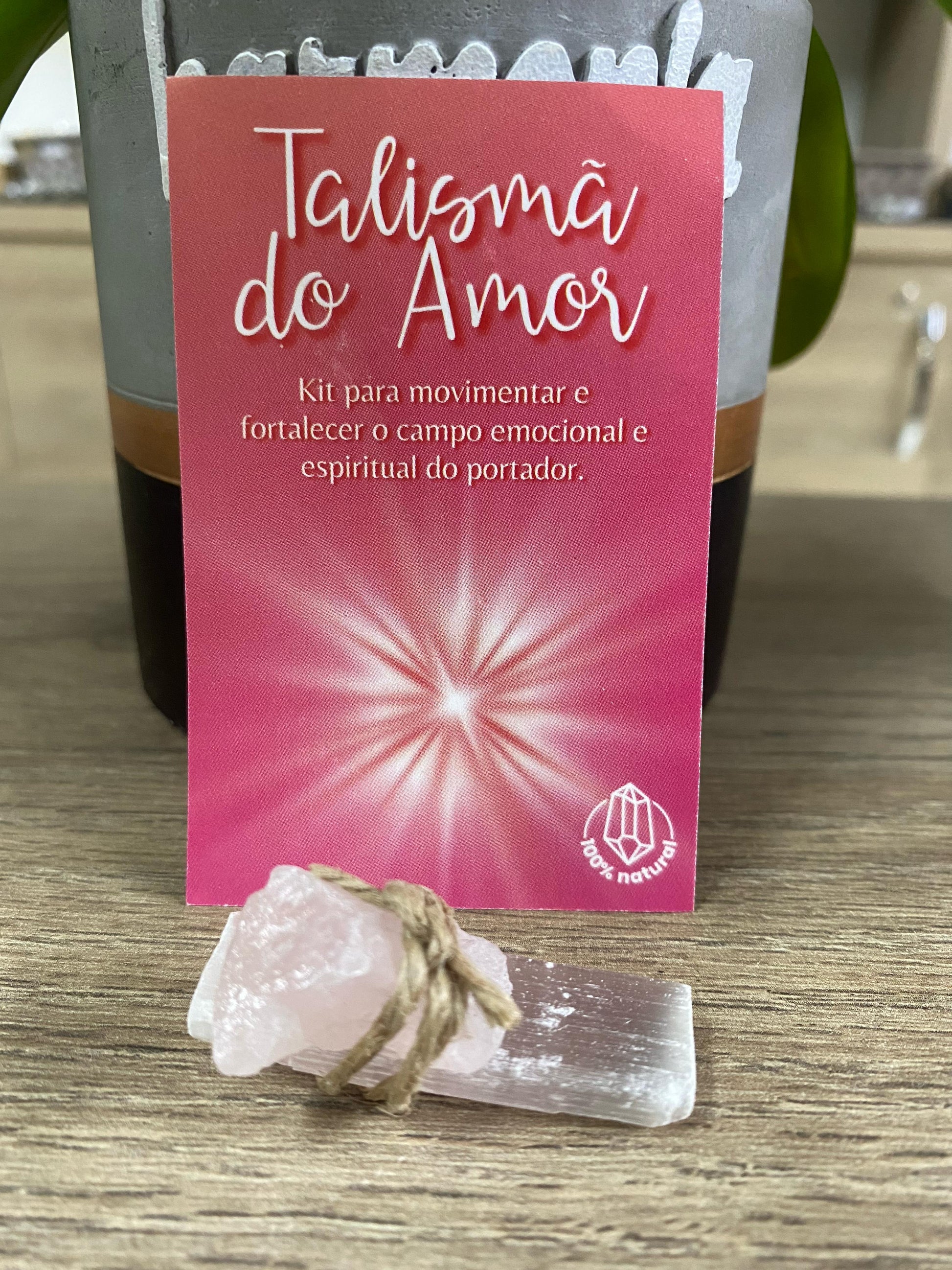 Abrace as energias do amor com o nosso Talismã especial, uma combinação harmoniosa de Selenita e Quartzo Rosa. Este poderoso amuleto é projetado para atrair e intensificar as vibrações amorosas, proporcionando uma conexão profunda e serena.